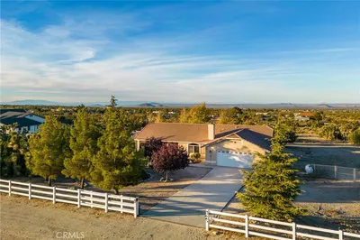 Welcome to your peaceful high desert retreat located at 12384 Redwood Road in Pinon Hills. This charming three bedroom, two bathroom single family home offers space, comfort, and abundant natural light, ideal for those seeking a quiet setting with room to spread out. Inside, the home features a warm blend of wood toned flooring and tile, complemented by large windows throughout that fill the space with sunlight and highlight the surrounding desert landscape. The inviting living room includes a cozy fireplace, perfect for cooler desert evenings. The spacious kitchen is designed for both functionality and gathering, offering ample cabinetry, a gas stove and range, dishwasher, and generous counter space. Bedrooms are well sized with ample closet space, providing flexibility for family, guests, or a home office setup. Additional highlights include a separate laundry room with washer and dryer connections and a rare three car attached garage offering excellent storage and parking options. A standout feature of the property is the approximately 2,400 square foot detached shop, a separate standalone structure equipped with electricity and power, office space, and an attached bathroom with shower, ideal for workspace, hobbies, or additional utility. Set within the tranquil Pinon Hills community, this property blends desert charm with everyday convenience, creating an ideal environment to relax, unwind, and enjoy wide open skies.