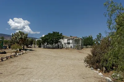 This High Desert Oasis with 2 brand new bathrooms, oversized two car detached garage, and over 2 acres of land is located in the friendly community of Pinon Hills. With super easy access to Highway 138 this property is everything you ever dreamed of. The front gate welcomes you to a paved driveway. As you stroll up the steps to the front door you'll be greeted with a wraparound porch with views, views, views. Upon entering the home you'll find an oversized living room with wood burning fireplace. The kitchen offers open space to the dining area making it a breeze to entertain. The stainless-steel refrigerator is included. Down the hall you'll find the brand-new hallway bathroom which creates a jack and jill feel to the second bedroom. The second bedroom features a built-in Murphy Bed. The desk can be used during the day and the pull-down bed can be used at night. The master bedroom features tons of closet space and remote window blinds. The en suite bathroom is brand new. The laundry room is inside and includes both the washer and dryer. The oversized detached garage features two single car garage doors with a side door. You'll have plenty of storage space when you add the free-standing shed. Come enjoy 360 degrees of views. Once you see the snowcapped mountains you'll want to stay forever. Welcome Home!