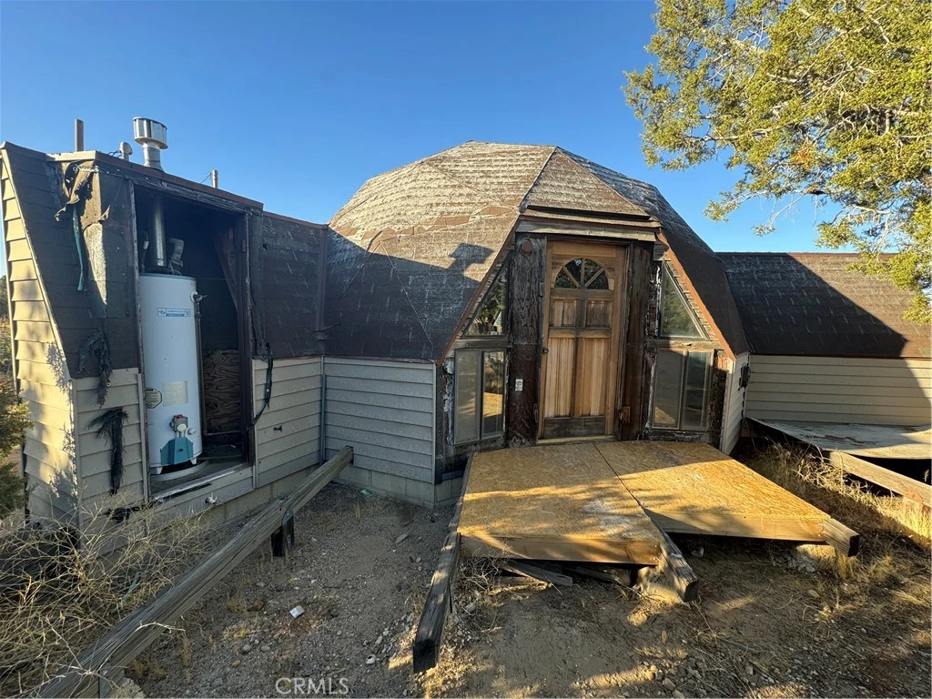 Unfinished geodesic dome house located in high desired south Pinon Hills with large 4+ detached garage and located on pavement. This 715 +/- square foot dome home is just waiting to be finished and offers 1 bedroom and 1 bath. The detached garage appears to have been built before the home was constructed and is at least 1,200+ square feet offering plenty of storage for vehicles or toys. Both the home sit on a beautiful property filled with natural desert junipers and offers stunning views of the valley to the north and the San Gabriel Mountains to the south. The 2.4 +/- acre lot is funny fenced. This property offers quick access to Hwy 138 for access to town, Wrightwood, and any needed commuting. The property is zoned for horses and located within the Snow Line School District.