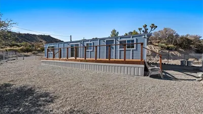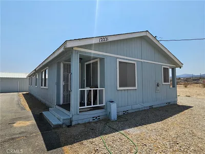Upgraded and move in ready manufactured home with enormous 1,200 square foot (40X30) steel built garage which is close to pavement and located in desirable south Pinon Hills. The home welcomes you with a wrap around porch on 3 sides of the home making a great space to enjoy peaceful desert living. When entering the home you'll notice the upgraded wood burning stove and hearth that does an incredible job heating the home in the cooler months. The spacious living room opens up to the dining area and upgraded kitchen with newer cabinetry and granite tile countertops. The kitchen was thoughtfully laid out to provide plenty of cabinet storage space as well as countertop surface for anything you will need. There is newer laminate wood flooring throughout the entire home which is both durable and low maintenance. The 2 bedrooms, 2 bathrooms, and laundry are all located down the hallway. The primary bathroom offers a separate tub and shower as well as dual vanities. Off of the back porch is a carport space to pull up close to the home. The gigantic garage space would make anyone excited as it offers an immense amount of space for whatever you see fit. The garage has electrical throughout as well as its own wood burning stove to heat the space to make it a comfortable space year round. The property is full fenced and the home and garage sit towards the back half of the property which offers greater privacy. This property has a natural gas connection which is rare in the community and is a sought after feature. The property is very conveniently located just off of Hwy 138 making commuting or the trip to downtown very simple. The property is zoned for horses and located within the Snow Line School District.