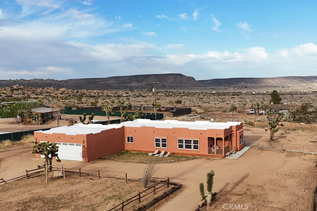 Welcome home in the serene enclave of Pioneertown, CA—a beautifully crafted single-family home offering a harmonious blend of modern luxury and rustic charm. This 1,300 square-foot residence features 3 spacious bedrooms and 2 elegant bathrooms, providing ample space for comfort and relaxation. The heart of the home is the open kitchen, boasting a sleek island with a cooktop, dishwasher, refrigerator, and pantry. Its bright and airy design is enhanced by recessed lighting and a skylight, perfectly complementing the dual pane windows with window treatments. The kitchen flows seamlessly into the formal dining room, ideal for entertaining guests. Luxuriate in the primary ensuite, complete with a separate shower and a spa tub, offering a spa-like retreat within your home. Each bedroom is equipped with ceiling fans, large closets for generous storage space. Step outside to your private patio, where you can unwind in the hot tub while enjoying the tranquil western exposure. The fenced front yard provides privacy and a safe space for outdoor activities. This home not only includes central heating and air conditioning (new system in 2021) but also features a convenient laundry room with a washer and dryer. Additional amenities include an attached garage and on-site parking, adding to the convenience of this well-appointed home. New roof in 2022. Fully furnished and ready for you to move in, 2559 Ox Yoke Pass is a perfect blend of comfort, style, and functionality in the heart of Rimrock. Pappy & Harriet's (legendary restaurant/venue) 8 min drive. Rimrock Ranch (wedding venue) 1 min drive. Burns Canyon Road Trailhead - 5 min drive(off roading trail that leads to Big Bear) Don't miss this opportunity to own a piece of paradise!