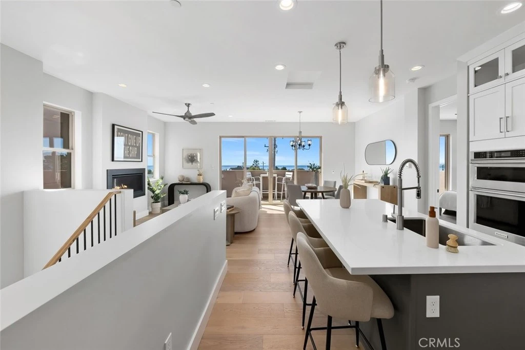 Epitomizing the best of coastal California living, this newly built residence in Pismo Beach captures iconic ocean views while delivering the comfort and efficiency of modern design. Beauty from every angle, this Mediterranean-inspired home blends timeless architecture with today’s most desirable amenities. A concrete paver driveway welcomes you to a dual-bay two-car garage with additional storage and direct access to the home’s first level. The striking stone façade, concrete tile roof, and professionally designed landscaping create an unforgettable first impression. The entry level is thoughtfully designed for comfort and privacy, featuring a spacious family room that opens to the backyard. Two generous bedrooms share a beautifully tiled Jack-and-Jill bathroom with dual-sink vanity, offering both style and function. Upstairs, open-concept living elevates everyday life. The main living area is anchored by a gas fireplace and framed by sliding glass doors and expansive windows that flood the space with natural light. The ocean-view balcony just beyond offers a front-row seat to breathtaking sunsets and ocean panoramas. The dining area flows seamlessly into a chef-inspired kitchen showcasing an oversized island with seating and prep sink, stainless steel appliances, decorative tile backsplash, and floor-to-ceiling shaker-style cabinetry. Designer-selected finishes, recessed lighting, and statement fixtures add sophistication throughout. The primary suite is a private retreat with direct deck access and serene ocean vistas. The spa-like ensuite bath features a walk-in shower with built-in seat, dual-sink vanity, private water closet, and a spacious walk-in closet. A ceiling fan enhances comfort year-round. Completing the upper level are a stylish powder room and a dedicated laundry room with convenient sink and additional storage. Rare for coastal homes, this property includes air conditioning and owned solar for energy efficiency and year-round comfort. The large, private backyard patio provides an ideal setting for gatherings, dining al fresco, or simply enjoying the peaceful surroundings. Located within a gated community just moments from local shopping, dining, entertainment, and the beach, this exceptional home offers the perfect blend of luxury, privacy, and proximity to everything that makes Pismo Beach so desirable.