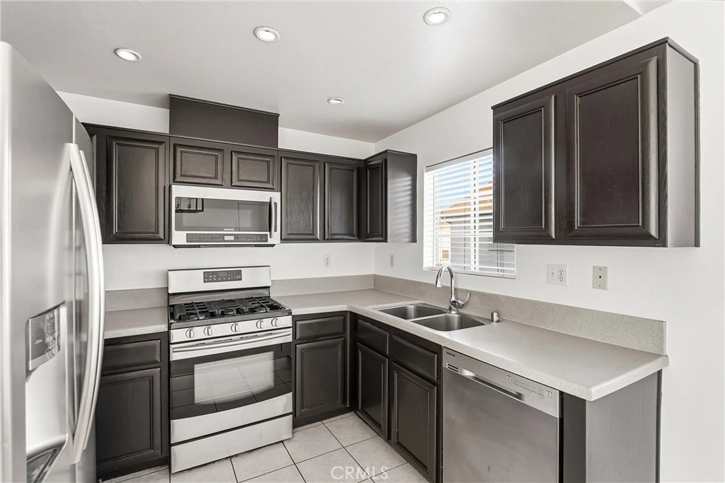 Enjoy a private, serene lifestyle with beautiful views from every window. This two-bedroom, two-bath upper-level end-unit condo offers a rare single-story, open-concept feel with all living space on one level, plus the added convenience of a detached garage, with laundry. Freshly painted throughout, the interior features laminate wood flooring and an abundance of natural light that fills every room. The upgraded kitchen is equipped with stainless steel appliances, durable solid-surface countertops for easy maintenance, and generous wall-to-wall cabinetry providing ample storage. The spacious living room is thoughtfully designed with three large windows, making furniture placement easy while showcasing peaceful treetop views. The primary bedroom suite is generously sized with soaring vaulted ceilings, a walk-in closet, and a private balcony that captures the surrounding scenery. Each room bathes in natural light, enhancing the home’s bright and airy atmosphere. Ideally located just minutes from shopping, dining, and convenient access to the 55, 57, 91, and 241 freeways, this home offers both privacy and accessibility. Tucked away and quiet, it truly feels like a hidden gem. Additional value-laundry in the garage, two association pools and spas, a community basketball court, storage racks in the garage, central A/C, and a turnkey, well-maintained condition ready for move-in.