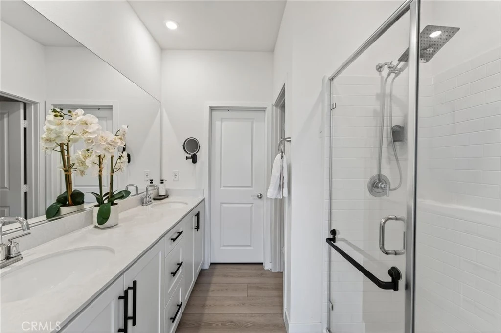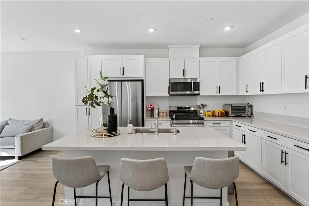 One of the largest 2 beds on the market. THIS HOME QUALIFIES FOR A $20,000 GRANT for first time home buyers to buy down rate. Welcome to this PAID OFF SOLAR powered home, with 2 EN-SUITE bedrooms, 2.5 baths, 1320 sq ft of open living space in a secure GATED COMMUNITY. Comes with a DIRECT ACCESS, OVERSIZED 2 car garage, EV charging outlet, tankless water heater, and in-unit washer/dryer. This model comes with more storage than other models and has window coverings installed, upgraded luxury vinyl flooring THROUGHOUT, quartz countertop, 5 burner GAS stove, and shaker cabinets. ZERO CARPET. The community has a low HOA, guest parking and amenities to enjoy. Amenities include secured gates, fire pit lounge, outdoor bbq, half court basketball, childrens playground, and dog park. Sellers will also purchase a one year HOME WARRANTY for the buyers.