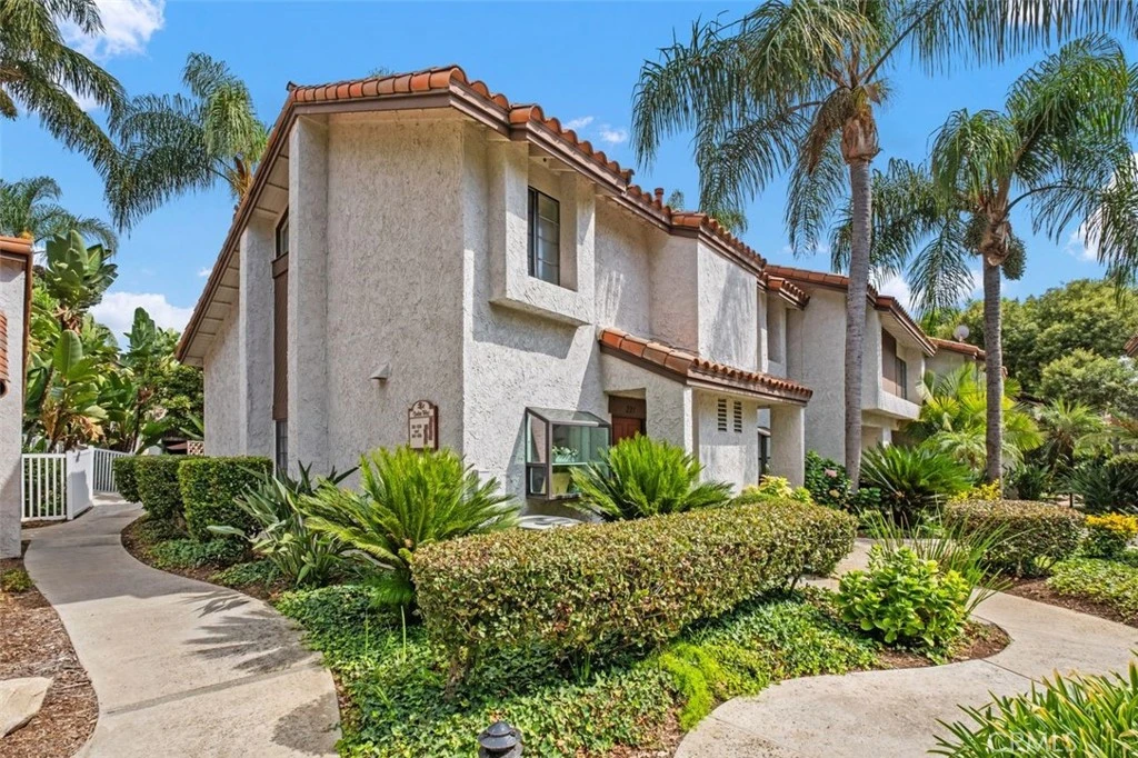 This Premium End-Unit Townhome is Completely Move-in Ready. Nestled in the picturesque Placentia Lakes gated community, the tranquil views of meandering waterways, the serene sounds of running streams, and the lush landscaping provide a sense of retreat. This beautiful home features one bedroom, one bathroom, high ceilings, and a grand living space that is flooded with natural light. The layout is designed to be spacious and functional, providing ample room for comfortable living. The updated kitchen enjoys stainless steel appliances, abundant cabinetry, a lovely garden window, and a breakfast bar. The adjoining living room and dining area are highlighted by elegant wood flooring, a freestanding Swedish fireplace, and a large sliding glass door that leads to a rear patio with private laundry room closet. Upstairs, the spacious loft-style suite offers vaulted ceiling, skylight, walk-in closet with modern organizers, and remodeled bathroom. New Carpet and Fresh Paint throughout. Additionally included is a covered carport space with overhead cabinet storage. Association amenities include private tennis courts, two saunas, two community pools, and two spas. This home offers the perfect balance of suburban living amenities with urban conveniences of nearby Anaheim Angels Stadium, Cal State Fullerton, shopping, and dining. Welcome Home!