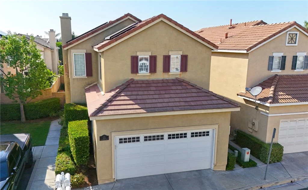 Discover a beautifully upgraded home in the prestigious gated community of Fairways at Alta Vista. This spacious 3-bedroom, 2.5-bathroom residence offers 1,750 square feet of living space with a large bonus room and a peek-a-boo golf course view. Step through a spectacular custom iron door with a glass partition panel into a world of elegance and comfort. The living room, adorned with hardwood floors, a gas fireplace with a mantle, and plantation shutters, invites you to relax and unwind. The dining room, with its chandelier and door to the backyard, offers a perfect space for entertaining guests. As you explore further, you'll find a gourmet kitchen equipped with a modern flair, including granite countertops, a subway tile backsplash, a stainless steel sink, stainless LG appliances, and an adjacent inside laundry room. The spacious bonus room, with its peek-a-boo golf course view, carpet, cathedral ceilings, ceiling fan, and plantation shutters, offers a versatile space for relaxation or entertainment. The primary suite, with its luxurious en-suite bathroom, is a true retreat. The bathroom features a dual vanity with granite countertops, tile floors, a tile shower with a mosaic inlay, a bench seat and large glass doors, and a mirrored walk- in closet. The bedroom itself boasts cathedral ceilings with a ceiling fan. Two additional bedrooms offer carpeted floors, ceiling fans, mirrored wardrobe closet doors, and custom shutters. The hallway features a built-in linen closet and a Nest thermostat. The shared hall bathroom features tile floors, a tub/shower combo with tile inlay and glass doors, granite countertops, and a new vanity and fixtures. The attached two-car garage provides ample parking and takes advantage of the Tesla solar panels. The community offers a pool, spa, playground, park, and picnic area with BBQ facilities. Recent updates, such as a full remodel in 2015-2016, a new AC unit in 2024, and a new front door in 2022, ensure this home is in pristine condition. Experience the perfect blend of luxury, comfort, and community living in this exceptional property..