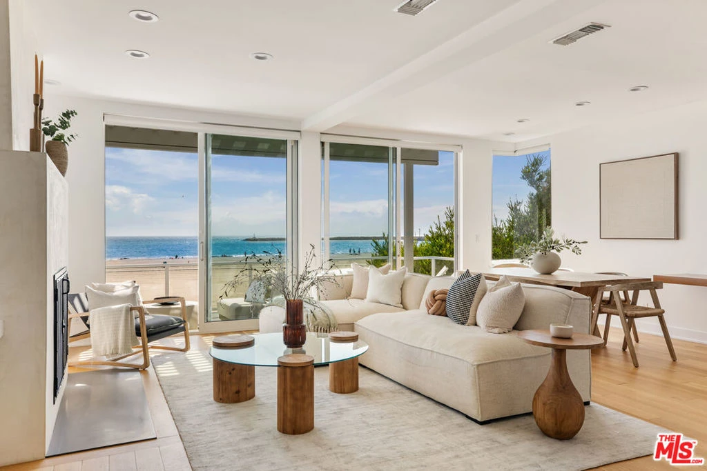 Imagine waking up every day to the white sand and blue waters of the Ocean right outside your door. Welcome to a stunning modern beachfront home, located in an exclusive enclave of Playa del Rey, where opportunities to own a gem like this are few and far between. Step inside and be transported by an open floor plan with soaring ceilings, abundant natural light and breath-taking panoramic views of the sand, sea and sky. Wall-to-wall glass doors slide open to reveal a spacious covered sun deck, perfect for al fresco dining and unforgettable sunset gatherings. Indulge your culinary passions and entertain with ease in the gourmet kitchen with sleek quartz counters, top-of-the-line appliances and a generous pantry. On the lower level, a Great Room with ocean views and direct beach access, has its own kitchen, and is ideal for more casual dining, game and movie nights, or a dreamy home office. The Great Room opens onto a covered patio and beautifully landscaped garden with a private pathway to the widest and most serene beach on the Westside. And steps from your front door is the 22-mile beach bike path. Incredible location in sleepy Playa del Rey is moments from fine dining, coffeehouses, Playa Vista, and everything the Westside has to offer. This is coastal living at its finest!