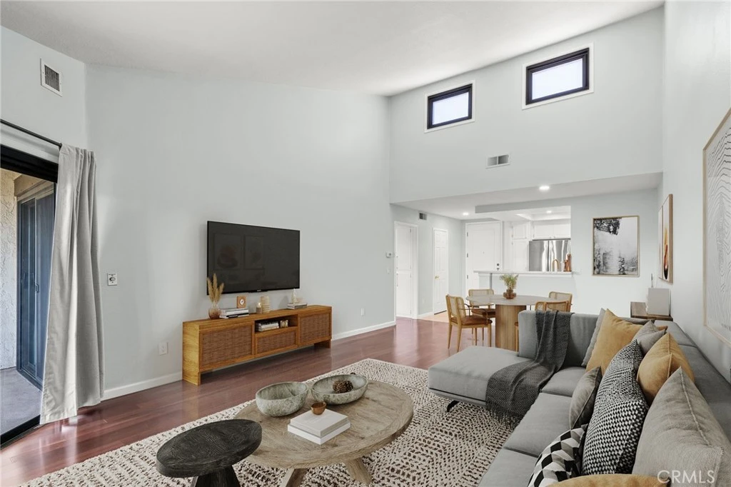 Step into this spacious, sun-drenched top-floor unit in the sought-after Villa Del Rey community—walking distance to the beach! Enjoy dramatic vaulted ceilings, a cozy fireplace, and a generous west-facing balcony with peaceful treetop views. The remodeled kitchen features stainless steel appliances, recessed lighting, and tile flooring. Wood floors run throughout the rest of the unit, adding warmth and continuity. The expansive primary suite offers a walk-in closet and a large soaking tub—perfect for unwinding. Additional perks include in-unit laundry, two assigned parking spaces, guest parking, and a private storage area. Villas Del Rey delivers resort-style amenities: pool, spa, gym, tennis courts, and clubhouse—all in the heart of Silicon Beach.