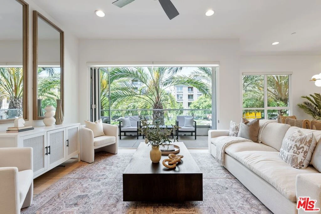 Stunning model unit located in Playa Vista's sought-after Skylar development with nearly $325k worth of builder upgrades! Uniquely situated in a premium location that overlooks the largest park that Skylar has to offer, creating truly a beautiful, open, yet private environment. A trellis directly out front enhances the unit's unique blend of serenity and privacy. Once inside, you will discover this two-story, 4 Bedroom, 3.5 Bath, 2,638 sqft home is filled with builder model unit upgrades throughout. Enjoy the convenience of a first-floor entry front door, a unique offering only available to first floor units. Upon entering the unit, you'll be warmly welcomed by a charming rustic wood wall spanning 20 feet in height. Once on the second floor, you will discover that this unit is an entertainer's dream home offering a spacious, open floor plan main level, featuring oak wood floors, a designer chef's kitchen with upgraded Thermador appliances, & custom cabinets. Additional highlights include an expansive waterfall style Quartz kitchen island, indoor/outdoor living room, & a master bathroom with marble throughout. The first floor also boasts a dedicated bedroom or home office, den/living room area, and wet bar & wine fridge, offering a great opportunity for supplemental income. The garage is finished with custom cabinets, a spackled floor, bike racks, a 'Monkeybar' storage system, offering plentiful storage space, bike racks, and room for two cars. The unit is also LEED Platinum certified, equipped with energy-saving features such as solar panels, a tankless water heater, and LED lighting. The sub-community of Skylar offers beautiful, well-kept landscaping and a dedicated BBQ & outdoor lounge with a fireplace perfect for entertaining large groups; while Playa Vista offers many amenities including a community clubhouse, pools, spa, fitness center, conference room, theater, basketball, tennis, racquetball, & volleyball courts, play grounds, & dog parks. Conveniently located within close proximity to The Resort, The Runway, Orange Theory, popular restaurants, shopping, a Cinemark & more! This premium condo is truly a unique offering in Silicon Beach!