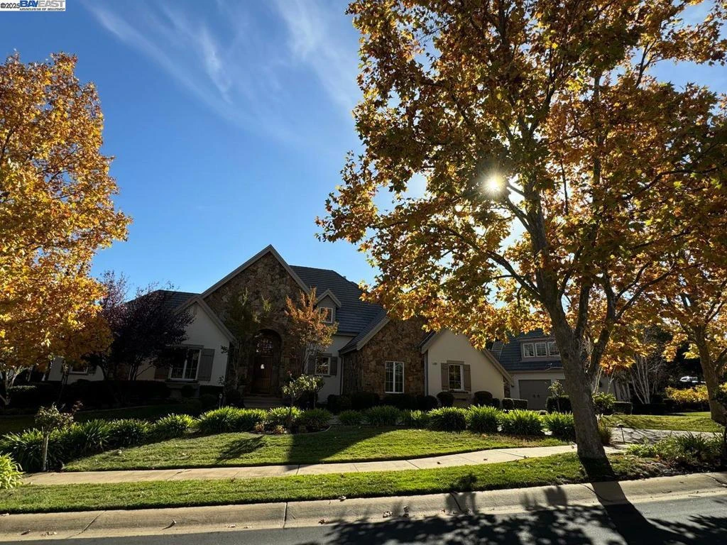 Discover the charm of French Country living in this private estate nestled among vineyards in Pleasanton’s Ruby Hill community. This 6-bed, 7-bath, 6,544 sqft residence on a nearly 30,000 sqft lot combines elegance with everyday comfort. Enter through a grand doorway to the inviting foyer with vaulted ceilings, hickory floors, beadboard accents, and custom shutters. The main level features a stunning remodeled primary suite and a versatile guest suite, while the curved hardwood staircase leads you to the upper level with three expansive bedrooms, 2.5 bathrooms and a loft. Over the garage is another guest suite for family, guests or your Au Pair. The private large guest suite features a modern bathroom and a spacious bedroom area. A chef’s kitchen offers a Viking range, Sub-Zero fridge, honed granite countertops, and a floor-to-ceiling wine chiller in the butler’s pantry. The open concept space, including the kitchen, family area, wet bar, and built-in desk, opens up to the peaceful backyard where you’ll find an outdoor BBQ, plenty of grass space and pool site possibilities. The front of the home features a large driveway, lush landscaping, and your very own cabernet vines. Located in the Livermore Valley wine region with top-rated Pleasanton schools.
