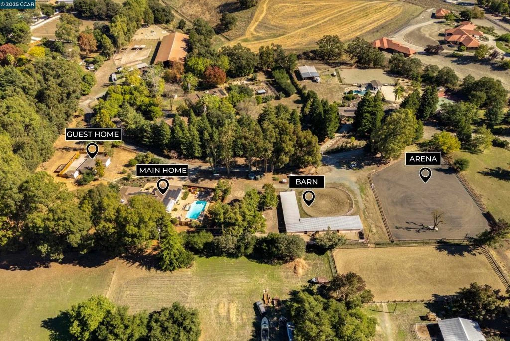 Luxury Meets Lifestyle in the Camino Tassajara Valley. Discover the best of Bay Area country living on 3.79 acres of flat, fully usable land in a private neighborhood where wide-open spaces meet everyday convenience. This move-in ready single-story home offers 4 bedrooms, 2.5 bathrooms, and 2,910 sq. ft. of thoughtfully designed living, plus a charming 2-bedroom, 1-bath guest house perfect for family, guests, or multi-generational living. 3925 total sq ft of living space. Equestrian enthusiasts will love the 8-stall barn with tack room, arena, round pen, and hot walker—everything needed for a premier horse lifestyle. Modern upgrades include 80 owned solar panels, Milgard windows, a gray water system, all-electric design, high-speed Wi-Fi, and a Tesla backup battery, blending sustainability with peace of mind. This property is also within the highly acclaimed San Ramon Valley Unified School District, celebrated for its top-rated schools. Here, you can enjoy the tranquility of country life while staying close to shopping, dining, and top Bay Area amenities. With spacious grounds, refined living, excellent schools, and complete equestrian facilities, this estate is a rare opportunity to have it all. https://listings.cre8r.agency/videos/019c3784-1595-72c8-84c1-3ccc4d2267d3