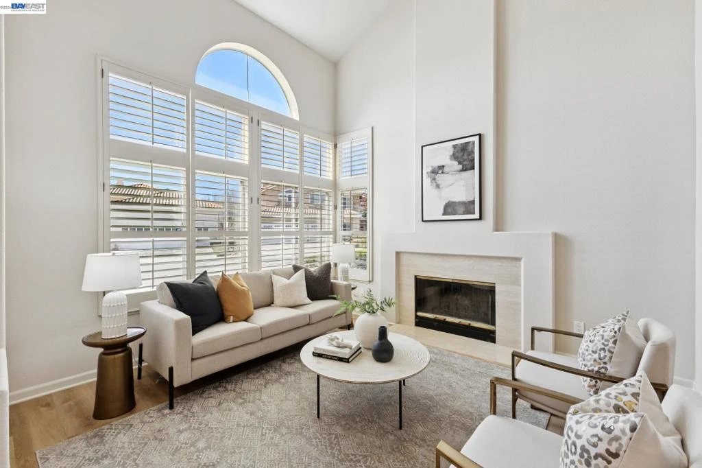 Remodeled modern charmer on a private cul-de-sac lot. Soaring vaulted ceilings, hardwood style LVP and engineered hardwood flooring throughout, elegant formal living room with fireplace and spacious dining room offer inviting space for entertaining. The remodeled gourmet kitchen features quartz countertops, a large center island with bar seating, six-burner gas range/oven combo with custom hood, built-in Sub-Zero refrigerator/freezer, and stainless appliances. The large family room features a gas fireplace and wet bar. The main level includes a bedroom, remodeled full bathroom and a functional laundry room with sink. Upstairs finds a large primary bedroom with vaulted ceiling and private balcony. The remodeled spa-like primary bath is your own private sanctuary, with vaulted ceiling, marble floors and walls, freestanding soaking tub, walk-in shower, dual-sink vanity with makeup station, and large walk-in closet with built-in storage. There are also 3 large secondary bedrooms upstairs, along with a functional hall bath with dual vanity. There is a 3 car garage with an owned solar system and battery backup. The backyard features custom patio areas, lawn, and a spacious side yard. Close to award-winning schools, Mission Hills Park, I-680, the ACE train, and downtown Pleasanton