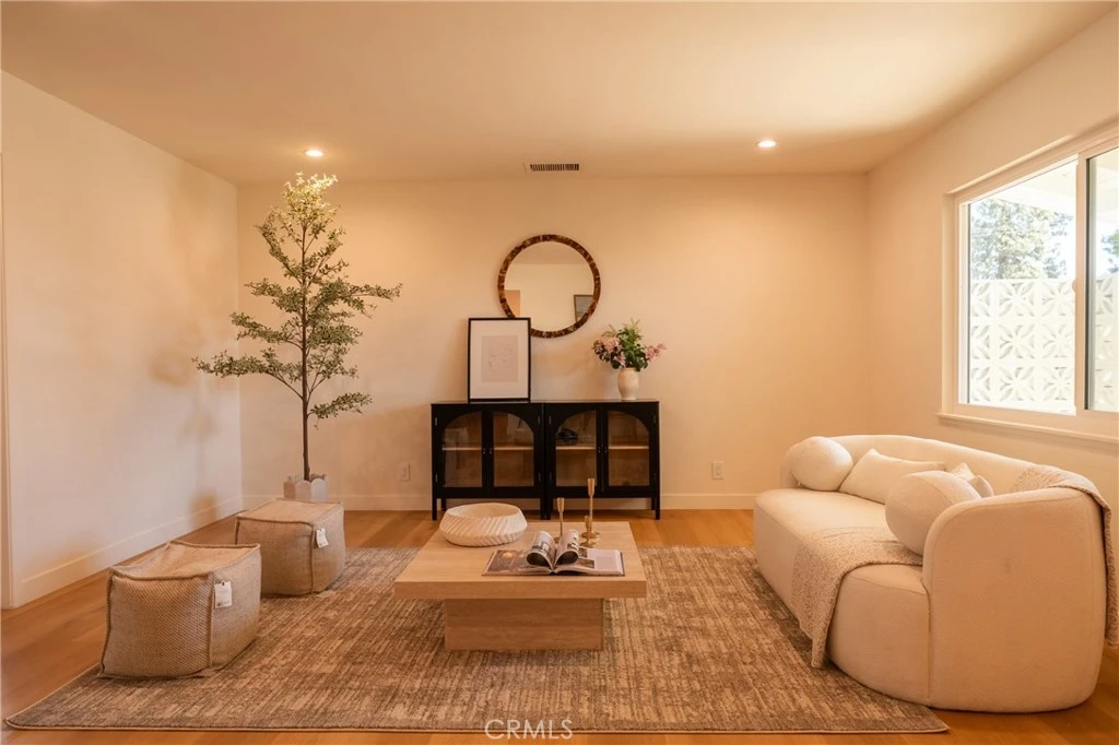 Welcome to this beautifully reimagined Mid-Century Modern retreat, nestled in one of Pomona’s most desirable neighborhoods adjacent to Claremont. Conveniently located near shopping, dining, parks, and everyday amenities, this home offers the perfect blend of architectural charm and modern comfort. Situated on an expansive 8,000 square foot lot, the property features 3 bedrooms and 2 bathrooms with nearly 1,500 square feet of thoughtfully designed living space. The interior has been tastefully renovated, showcasing a modern kitchen with European-style flat panel cabinetry, designer tile backsplash, and brand-new stainless steel appliances. Updated bathrooms and luxury vinyl flooring throughout create a cohesive, clean, and contemporary feel. The backyard is a true private retreat. The pool has been newly replastered, and the resort-inspired outdoor setting offers generous patio space, a fire pit area, and multiple seating zones—ideal for entertaining or simply enjoying Southern California living. New dual-pane windows enhance energy efficiency, while the stunning post-and-beam ceilings preserve the home’s authentic Mid-Century character and distinctive architectural appeal. This is a rare opportunity to own a turnkey Mid-Century gem in a prime location with space, style, and timeless design.