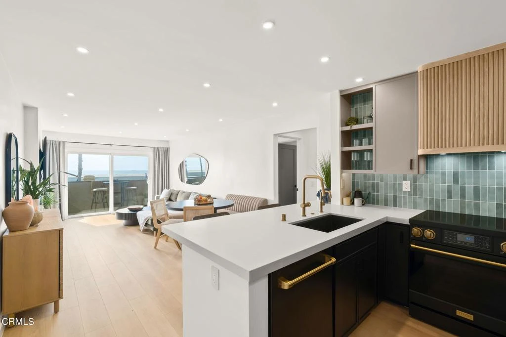 BEACHFRONT, first-level 3-bedroom, 2-bath condominium with no stairs, ideally positioned near the iconic Port Hueneme Beach and Pier, where daily life is defined by ocean breezes and golden sunsets. This rare, fully renovated residence has undergone an extensive, no-expense-spared transformation, blending thoughtful coastal design with modern sophistication.The light-filled, open living space showcases designer finishes throughout, including waterproof luxury plank flooring, a sleek electric linear fireplace wrapped in Roman clay, and energy-efficient LED recessed lighting with dimmers, complemented by under-cabinet and under-island accent lighting for added ambiance.The kitchen is a true showpiece, featuring thin shaker cabinetry, suede-finish designer countertops, a custom hood above the stove, reverse osmosis at the sink, and all-new appliances including a French-door refrigerator--perfectly curated for both everyday living and entertaining. Designer tile accents and cohesive finishes continue into the beautifully reimagined two bathrooms, highlighted by a soaking tub, frameless mirror closet doors, and refined, spa-inspired details.All three bedrooms are well-appointed, offering comfort, versatility, and a tranquil coastal feel. Additional upgrades include a new electrical panel, new shaker-style interior doors throughout, EV charging, gated access, and energy-efficient systems designed for comfort and peace of mind.Offered as a true turnkey opportunity. Residents enjoy an affordable HOA with resort-style amenities, including two pools, a spa, and a recreation room--perfect after a day at the beach, pier strolls, or sunset watching.A rare opportunity to own a one-of-a-kind, single-level coastal retreat with unmatched quality, amenities, and proximity to one of Ventura County's most beloved beaches.