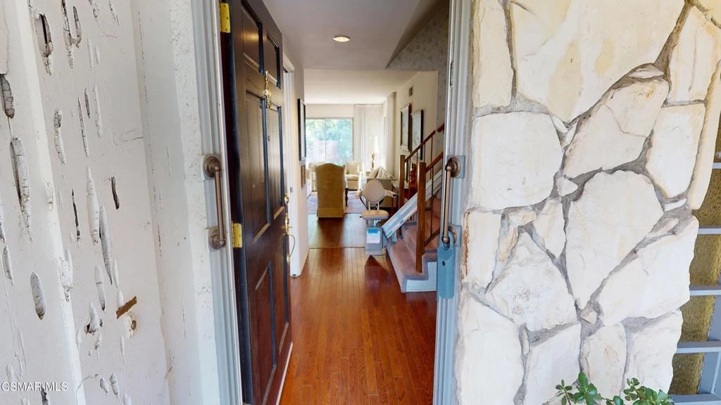 First time on the market! Original owners! This cherished home has been maintained well and lovingly cared for since day one, offering a rare opportunity to own in one of Porter Ranch's most desirable neighborhoods. Situated in a highly sought-after area, the property is zoned for excellent schools, including top-rated Beckford Elementary, Nobel Charter Middle, and Granada Hills Charter High School. Freshly updated landscaping immediately boosts curb appeal, welcoming you to a beautifully presented two-story residence boasting 5 bedrooms, 3 bathrooms, and approximately 2,501 square feet of thoughtful living space. The main level features an open and inviting layout, a spacious kitchen with a convenient peninsula opens to a bright breakfast eating area. Adjacent is a generous living room highlighted by a striking rock-faced gas fireplace plus a formal dining room, both filled with great natural light. Completing the downstairs are two guest bedrooms and a full bathroom perfect for visitors or multi-generational living. Upstairs, the primary suite offers a peaceful retreat with its own private bathroom, while two additional bedrooms share a well-appointed hall bath. Quality details throughout include a mix of hardwood and wood-like flooring, smooth ceilings, recessed lighting, central air conditioning and heating, and more modern comforts. Step outside to a private backyard designed for relaxation and entertaining, an excellent space for gatherings, barbecues, or simply enjoying Southern California's beautiful weather. Don't miss this exceptional, move-in-ready home in prime Porter Ranch. A true gem from original owners who have taken exceptional pride in ownership.
