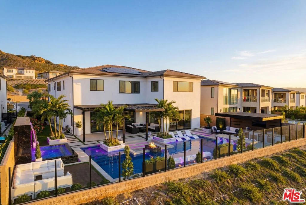Luxury Living in Guard-Gated Westcliffe. Welcome to this move-in-ready luxury residence located in the prestigious guard-gated Westcliffe community. Offering approximately 5,000 sq. ft. of sophisticated living space, this 5-bedroom, 5.5-bath home is filled with top-tier upgrades and thoughtful design elements throughout.A striking floating staircase sets the tone upon entry, complemented by expansive 20' x 9' sliding doors on the first floor that create seamless indoor-outdoor flow. The oversized primary suite provides a true retreat, enhanced by its generous layout and elevated finishes. An enclosed California room expands the living footprint even further, featuring a custom-designed bar area tailored specifically for the space perfect for entertaining and year-round enjoyment.Every detail has been meticulously upgraded: premium flooring, a designer kitchen, and spa-quality bathrooms. The home is fully prewired with built-in speakers and connected to a Sonos system for whole-home audio. Custom Shade Store blinds and curtains, including automated window treatments, pair beautifully with custom chandeliers and refined moldings throughout. Organization is elevated with fully customized cabinetry by California Closets and Inspired Closets, extending to the upstairs media room. Located on a wide, quiet street, the property showcases gorgeous panoramic city and canyon views, offering a stunning backdrop for both everyday living and entertaining. A rare opportunity to own a highly upgraded, turnkey home in one of the area s most sought-after gated communities. Backyard plans are fully approved with HOA and shovel ready.