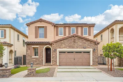 Welcome to this Renaissance Estate located in a highly sought-after guard-gated community. Originally built as a former model home, this residence showcases refined upgrades and one of the neighborhood’s most desirable and limited floor plans, only a handful were ever built. Offering the versatility of a two-story layout with the rare convenience of a primary suite on the main level, the home lives comfortably as either a single-story or a spacious two-story retreat. Step through elegant glass entry doors into a light-filled open floor plan featuring gleaming marble floors, crown molding and soaring ceilings. Just off the entry, a versatile bedroom with custom built-ins, wainscoting and wood flooring makes an ideal home office or guest suite, complemented by an adjacent guest bath with a custom-tiled walk-in shower. The bright and inviting chef’s kitchen features modern cabinetry, upgraded quartz countertops, stainless steel appliances and additional storage within the breakfast nook. Open to the family room, the space is enhanced by custom built-ins, a beautifully detailed fireplace mantel and sliding doors that frame peaceful backyard views. Privately situated, the spacious main-level primary suite is filled with natural light and offers direct backyard access through sliding doors. The spa-inspired ensuite includes a soaking tub, oversized separate shower, dual vanities and a generous walk-in closet. A third downstairs bedroom with its own private bathroom and separate vanity area provides comfortable accommodations for guests or multigenerational living. Upstairs, a flexible bonus room with a cozy fireplace and custom built-ins offers endless possibilities as a secondary living space, office or gym. An additional oversized bedroom with ample closet space and a full bathroom featuring designer wallpaper and a tub/shower combination completes the upper level. The private backyard oasis is thoughtfully landscaped for both relaxation and entertaining, featuring multiple seating areas, the tranquil sound of water, a putting green and mature greenery. Additional highlights include a laundry room with a sink, three-car garage, artificial turf in both the front and rear yards for minimal water usage, and paid-off solar. Residents of this prestigious community enjoy excellent schools, nearby parks, convenient freeway access and are just minutes from The Vineyards, which offers popular shopping, movie theater and dining destinations.