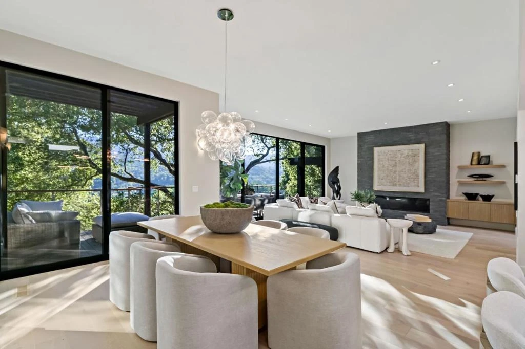 Completely remodeled in 2020, this exceptional Portola Valley Ranch home showcases stunning western views framed by a majestic oak overlooking rolling, verdant open space, creating a picturesque, tranquil setting. The dramatic living room is anchored by a stone fireplace wall and bathed in natural light, seamlessly connecting to the adjacent dining area with oversized glass doors that showcase the views and open to an expansive entertainment deck for indoor-outdoor living. The chefs kitchen features Quartzite countertops, a waterfall island with prep sink, wine cooler, bar seating, Thermador appliances, sleek cabinetry, and a full pantry, flowing effortlessly into the main living spaces. The main level also includes a luxurious primary suite with fireplace, breathtaking vistas, spa-like bath, a stylish den with fireplace, designer powder room and a well-appointed laundry room. The lower level offers a spacious family room, a private ensuite bedroom, two additional bedrooms, a hall bath, and a second laundry room, providing flexible living and guest space. Enjoy resort-style amenities exclusive to the Ranch community, including 2 pools, 3 tennis courts, fitness center, Ranch House, community garden, vineyard, orchard, duck pond, dog park, miles of scenic trails, top-rated schools.