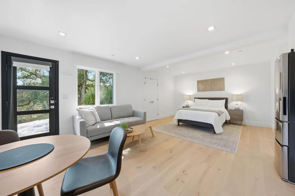 Luxury Furnished Studio Spacious 400+ sq ft luxury studio with private entrance and patio, overlooking beautiful multimillion-dollar views. Attached to the main home yet fully private and soundproof. Features include walk-in closet, high-end finishes, private indoor laundry, and easy street parking on a private court. Fully furnished with all utilities included.