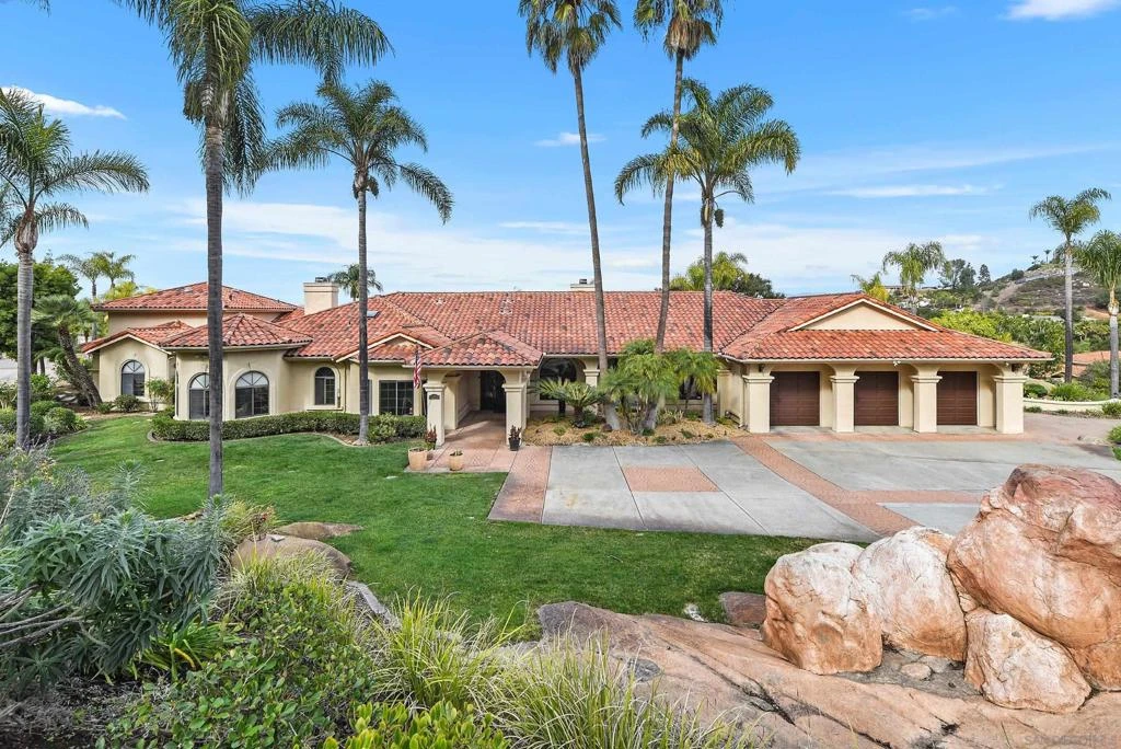Tucked away within the prestigious, gated community of Green Valley Glen, this exceptional Estate epitomizes luxury, offering a perfect blend of elegance and sophistication. This highly upgraded home is nestled within a tropical oasis, seamlessly blending modern sophistication with the serene beauty of nature. MAIN HOUSE: 5 Beds, 5.5 Baths (all ensuite); GUESTHOUSE: Approx 604 sqft, 1 bed/1 bath with LOFT and kitchenette. (included in total sqft). This spacious single level home offers breathtaking views, luxurious amenities, and manicured grounds. (Well on property for irrigation) This home was remodeled with attention to detail and top-quality fixtures and finishes, no expenses spared. Kitchen features: Gorgeous Alderwood cabinetry with espresso finish, Thermador flat top induction stove, double-dishwashers with dual sinks, oversized wet bar with refrigerator and icemaker, Viking six-burner stove and double oven with griddle, and built-in dog gates. (a must see!) Beautiful estate in North Poway sits on a premium 2.4 Acres lot with tremendous views. This meticulously maintained home features open floor plan, huge great room, large sized bedrooms (all ensuite), remodeled dream kitchen with walk in pantry with wine cellar, skylights, and 2 large islands. Expansive Great room with built in cigar closet. Oversized 3-car garage. 3-zone heating and AC in main house, plus separate heating and AC in guest house. The backyard opens into a private paradise, featuring sport court, firepit, pool solar, mature fruit trees, multiple private sitting areas, featuring a private gazebo on the top of the property that overlooks sweeping North-Westerly views. At night, the landscape transforms with soft, ambient lighting, illuminating the gardens and trees. Enjoy the resort-like tropical grounds saltwater pool/spa & multi-use sports court along with RV parking. No Mello-Roos. Low HOA annual dues. Close to shopping, schools, and parks. Award Winning Poway Unified School District.