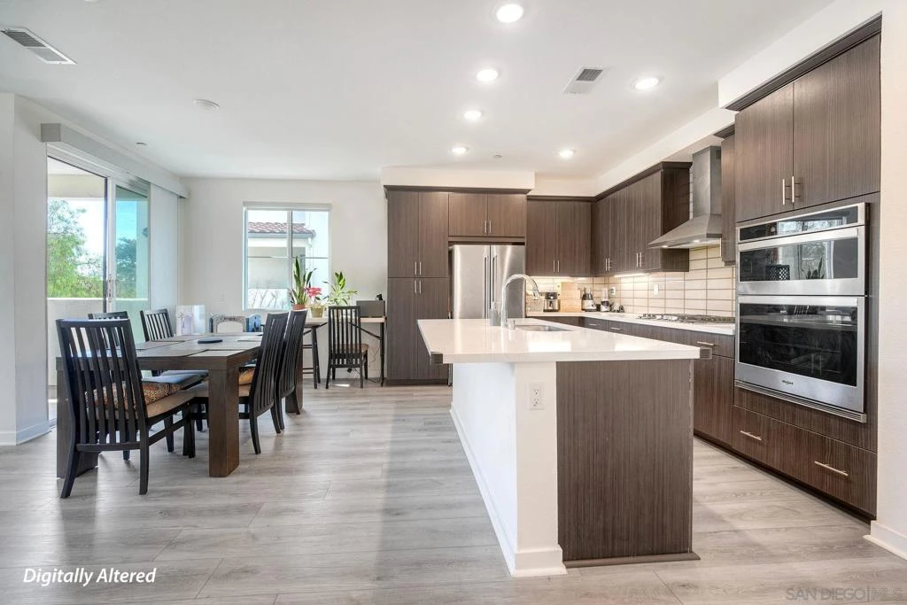 Stunning end-unit townhome with views in highly desirable Poway! This rare and hard-to-find home offers a flexible, family-friendly layout with modern touches throughout. The first floor features a private entry suite complete with a bedroom, living area, kitchenette, and laundry, perfect for extended family, guests, multigenerational living, or a private home office setup. The main living level offers a beautiful open concept design with a spacious kitchen featuring a large island, quartz countertops, upgraded cabinetry, stainless steel appliances, and a breakfast nook area. The large living room is a wonderful place to relax, unwind, watch TV and enjoy time together. This home is filled with natural sunlight throughout the day, creating a bright and welcoming feel. Step out onto the attached balcony to enjoy fresh air and park views. The main level also includes the oversized primary bedroom with great natural light, the bathroom has dual sinks, a shower, and a walk-in closet. Two additional bedrooms are generously sized and offer great flexibility for kids’ rooms, a home office, or a gym. A conveniently located upstairs laundry room adds everyday ease. Enjoy being just steps from the park, tennis courts, playground, and more..... ideal for active lifestyles, kids, and pets. Conveniently located near shopping, the library, schools, and freeway access. This is a truly must-see home!