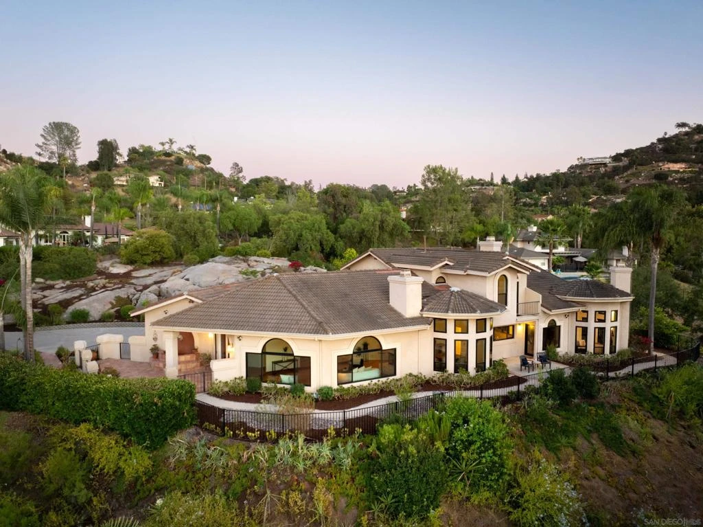 Architectural masterpiece featuring stunning arched windows and immaculate design. Elevated for the ultimate in privacy with gorgeous mountain views. Tucked away in the exclusive enclave of Green Valley Knolls, one of Poways premier neighborhoods, this refined estate offers an elevated lifestyle where luxury meets nature on 1.17 serene acres. Spanning 3,699 square feet, this custom built residence is a private sanctuary. A sweeping stone patio, energy efficient new doors and windows throughout, and a professionally designed landscape plan create the perfect setting for peaceful evenings under glowing skies. Step inside to discover airy, sunlit interiors with rich hardwood and tile flooring, high ceilings, and a seamless indoor outdoor flow. French doors and new windows frame tranquil vistas, while the sophisticated reimagined kitchen featuring a high end oversized quartz island, new induction cooktop, and custom cabinetry anchors the heart of the home. The primary suite offers a true retreat with a cozy fireplace, dual walk in closets, custom built ins, and a private deck ideal for morning coffee or evening stargazing. Four fully remodeled bathrooms showcase quartz countertops, new vanities, upgraded lighting, and beautifully tiled showers, blending luxury with timeless design. Located within the award winning Poway Unified School District. Architectural masterpiece featuring stunning arched windows and immaculate design. Elevated for the ultimate in privacy with gorgeous mountain views. Tucked away in the exclusive enclave of Green Valley Knolls, one of Poways premier neighborhoods, this refined estate offers an elevated lifestyle where luxury meets nature on 1.17 serene acres. Spanning 3,699 square feet, this custom built residence is a private sanctuary. A sweeping stone patio, energy efficient new doors and windows throughout, and a professionally designed landscape plan create the perfect setting for peaceful evenings under glowing skies. Step inside to discover airy, sunlit interiors with rich hardwood and tile flooring, high ceilings, and a seamless indoor outdoor flow. French doors and new windows frame tranquil vistas, while the sophisticated reimagined kitchen featuring a high end oversized quartz island, new induction cooktop, and custom cabinetry anchors the heart of the home. The primary suite offers a true retreat with a cozy fireplace, dual walk in closets, custom built ins, and a private deck ideal for morning coffee or evening stargazing. Four fully remodeled bathrooms showcase quartz countertops, new vanities, upgraded lighting, and beautifully tiled showers, blending luxury with timeless design. Located within the award winning Poway Unified School District.