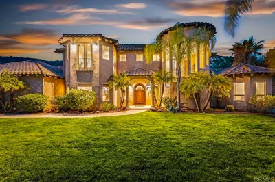 Cozy Single-Level Estate with a detached Casita in the prestigious enclave of Green Valley Summit positioned close to schools, lake and park. This private oasis exudes a rare blend of privacy, sophistication, and resort-style living nestled in the scenic hills, there are panoramic views from every direction. Set on over two meticulously landscaped acres, this home captures the essence of Southern California luxury. As you arrive, you’re welcomed by breathtaking mountain views and fruit orchards from the front of the property, creating a dramatic and unforgettable first impression. Inside, the home features over five spacious bedrooms, a dedicated media room, and a detached casita—perfect for guests, extended family, private office space.Crafted with the highest attention to detail, the interior showcases hardwood cabinetry, slab granite countertops, and elegant travertine flooring, all complemented by commercial-grade stainless steel appliances in a gourmet kitchen designed for both form and function. A newly installed air conditioning system ensures year-round comfort, while a high-end water purifier and softener system provide clean, refined water throughout the home. Step into the resort-like backyard, where you’ll find a heated pool and spa, surrounded by $300,000 in lush, professional landscaping that offers complete privacy and serenity. The backyard provides a tranquil retreat, enhanced with a covered entertaining area and beautiful mature trees. Further elevating the property is a private well and reservoir tank, supporting eco-conscious irrigation for both the landscaping and the orchard. A upgraded sprinkler system ensures efficient water distribution across the expansive grounds. The 4-car garage includes a high-end EV charging system, and the home is outfitted with a new alarm system, enhanced whole-home WiFi and Ethernet infrastructure, and an upgraded speaker system for seamless connectivity and entertainment throughout. This is truly a one-of-a-kind opportunity to own a home that combines timeless design with a luxurious Mediterranean masterpiece in one of Poway’s most exclusive neighborhoods. With top-rated schools, hiking trails, and upscale amenities just minutes away, this estate delivers an unparalleled lifestyle—indoors and out with about 450K of upgrades !