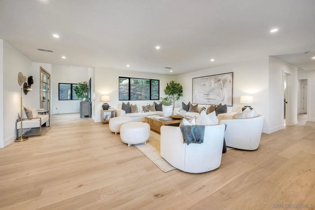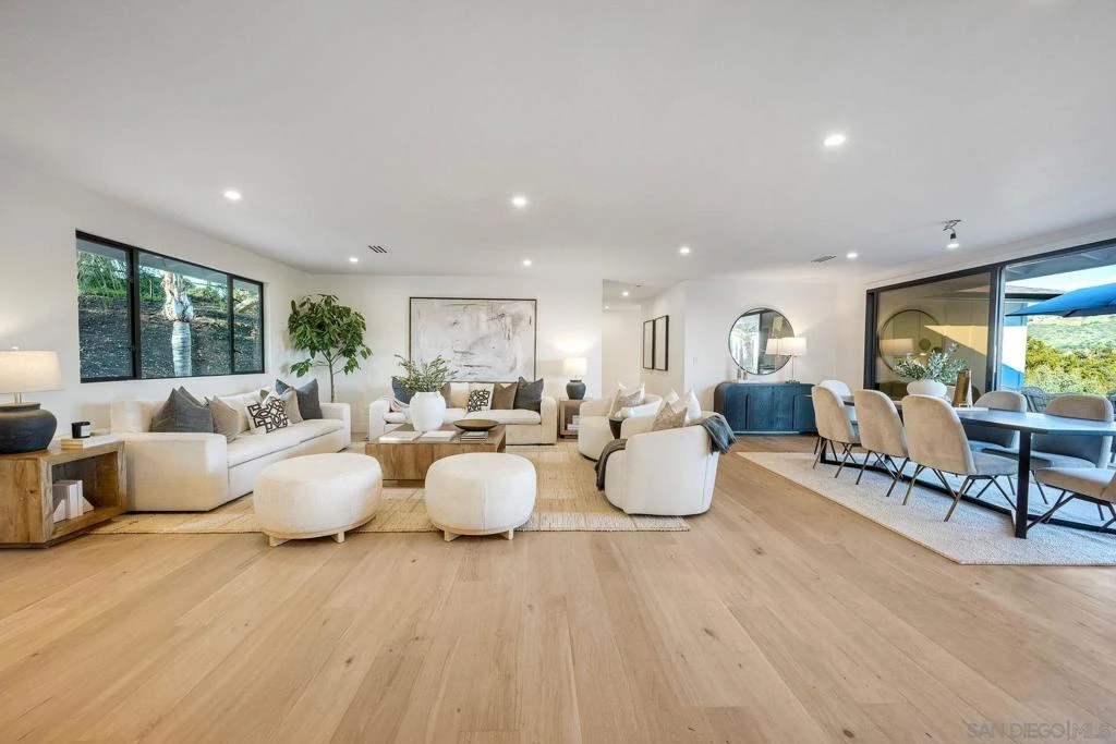 Welcome to 13940 Northcrest Lane, a beautifully renovated 3,000 sq. ft. luxury estate resting on nearly a private one-acre lot in the heart of Poway. Built by one of California’s premier luxury home builders, this exceptional four-bedroom residence seamlessly blends refined craftsmanship, modern upgrades, and a rare connection to the surrounding natural beauty. At the heart of the home is a chef-inspired gourmet kitchen, featuring commercial-grade Thermador appliances, custom cabinetry, and thoughtfully designed spaces perfect for both everyday living and entertaining. Elegant Mediterranean oak flooring flows throughout the home, creating warmth, sophistication, and timeless style. Three spacious ensuite bedrooms provide comfort and privacy for both homeowners and guests, while expansive living areas capture panoramic views from much of the home. A stunning 17’ x 8’ multi-slide glass wall creates a seamless indoor-outdoor living experience, opening to sweeping elevated views of the surrounding landscape. Set on a view-oriented lot, the property offers exceptional privacy, generous space, and a peaceful retreat while still being close to everyday conveniences. Sits on a private road with no HOA, the home enjoys tranquil surroundings and a welcoming neighborhood. Outdoor enthusiasts will appreciate being within walking distance to Lake Poway, with easy access to Blue Sky Reserve, Twin Peaks hiking trails, and nearby equestrian paths, offering endless opportunities to explore the natural beauty. In the heart of Poway Unified award winning schools!