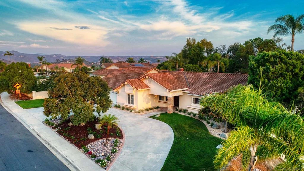 Discover elegance in this sprawling single-level home located in The Palisades, one of Poway's most sought-after neighborhoods. Perched on a 1.8-acre lot, this 3,194 sq/ft home is a secluded paradise with breathtaking canyon views. The interior features 3 fireplaces, abundant natural light from south-facing windows, and a gourmet kitchen with a walk-in pantry. Primary bedroom has attached bonus room for a home office or yoga retreat. 2nd bedroom has en-suite bathroom. A true Entertainers Delight Trust sale. Freshly painted inside and out, new LPV in living and sleeping rooms. Existing custom tile polished and kept. 3-car garage with attic ladder for extra storage. Dual A/C units for the home, one for living space, one for the bedrooms. Circular driveway for easy entry/exit. Possible room for RV/boat parking. Discover elegance and serenity in this sprawling single-level home located in The Palisades, one of Poway's most sought-after neighborhoods. Set on a generous 1.8-acre lot, this 3,194 sq/ft residence offers a secluded paradise with breathtaking canyon views. The backyard is a true oasis, featuring a sparkling pool and spa, beautifully landscaped grounds, and stunning sunset vistas. Inside, you'll find a home filled with warmth and light, boasting three cozy fireplaces, sun-drenched south-facing windows, and a gourmet kitchen complete with a walk-in pantry. The expansive primary bedroom includes an attached bonus room, perfect for an office, nursery, or yoga retreat. The second bedroom offers its own en-suite bathroom, providing comfort and privacy for guests or family.