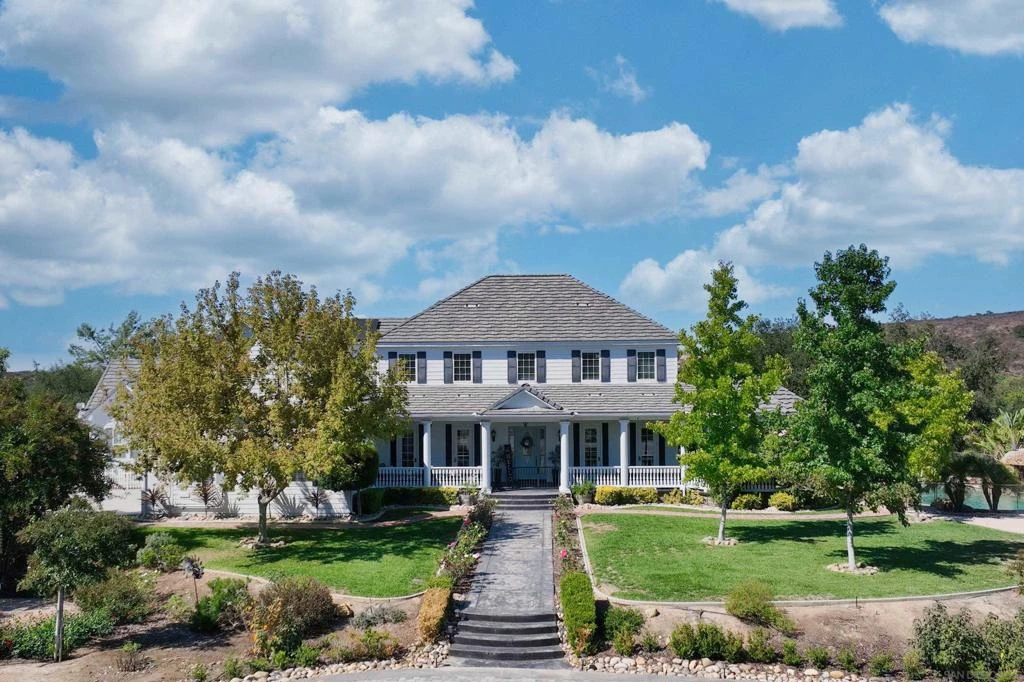 This gorgeous, privately-gated, flat 4.7 acre estate features an elegant wraparound patio and has all the bells and whistles one is looking for. Filled with tasteful upgrades throughout, floor to ceiling soft close cabinetry, beautiful granite countertops, and top of the line appliances. This home includes an attached 749 sqft guesthouse with a full bedroom/bathroom, its own HVAC system, vaulted ceilings, kitchen, and laundry. Each bedroom is an ensuite with walk-in closets. Second/optional primary suite upstairs/downstairs. 90-panel solar system, 3 Tesla batteries, and 1 electric car charger. City Water and well for irrigation. For those horse enthusiasts and animal lovers, this home offers a 3,000 sqft, 5-stall barn and tack room with built-in water and electricity with multiple RV/trailer pads/locations. You are able to access miles of trails directly from your property. Additionally, there is pipe corral “arena” toward the front of the lot. The property features exotic animal 10-foot fencing for pet’s safety, an amazing bird aviary, spacious chicken coop, and multiple outbuilding enclosures. Tri-zoned HVAC (upstairs, downstairs, and for the guesthouse). Delightful oasis pool & slide to the rear of the house - complete with grotto, rock featured waterfall, child-safe fencing, and Baja shelf. Champagne Sundance optima 6-person spa (above ground) completes the outdoor entertaining space. The land features a plethora of fruits trees, including, avocado, lemon, tangerine, apple, blackberry, and pomegranate. Cabernet/Merlot vines adorn the land as well. Experience the tranquility and serenity of this gorgeous Estate which is centrally located near shopping, schools, and the best that downtown Poway has to offer.