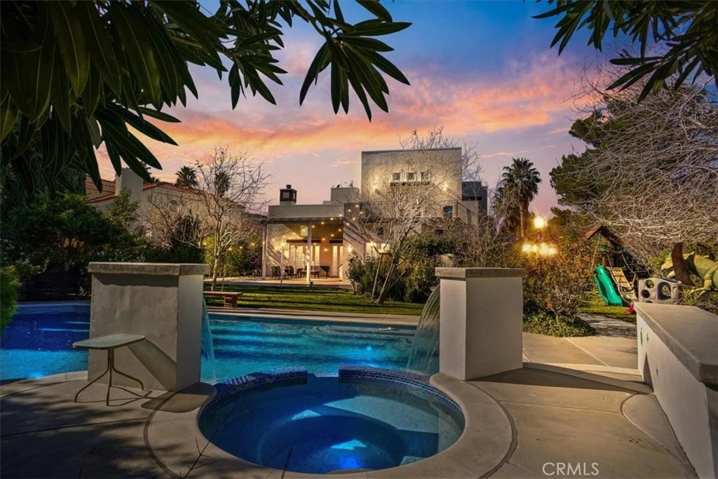 A Truly Spectacular Custom-built Home located in the Prestigious Gated Community of Godde Hill Estates with an Elevated Lifestyle of Luxury & Design. Set on a nearly Half-Acre lot with Breathtaking Landscaped Grounds, which are a Sanctuary of Beauty and Function. The Curb Appeal welcomes you with Striking Architectural Presence. This Exceptional Home offers approximately 4,200 sqft of Refined Living Space with four Spacious Bedrooms, each Featuring its own Private en-suite Bath, and a Three-car Garage with an Extended Driveway. Enter into the Grand Foyer for an Unforgettable First Impression, Gleaming Floors, an Exquisite Crystal Chandelier Suspended above the Custom Spiral Wrought Iron Freestanding Staircase. Additional Crystal Chandeliers Enhance the Home’s Elegant Ambiance, while Recessed Lighting throughout provides a clean, modern glow. The thoughtfully Designed open-concept floor plan features both a Formal Living Rm, Formal Dining Rm and a Family Rm which Flow Effortlessly beneath Voluminous Ceilings, Ideal for Grand-scale Entertaining and two Elegant Fireplaces. Rich finishes include Marble and Wood flooring. A Gourmet Kitchen with Granite Countertops, Stainless Steel Appliances, a Commercial-Style Range with Hood, Built-in Refrigerator/Freezer, Center Island and a Breakfast Room. A Desirable Main-level Bedroom with a Full Bathroom, complete with its own Patio and Separate entrance—ideal for Guests or Multi-Generational living. The luxurious Primary Suite serves as a Private Retreat with a Balcony over looking the Pool. The Master Bathroom features Dual Sinks, a Separate Soaking tub and Steam Shower, a Spacious Walk-in Closet with Custom built-ins. Additional Features in this Home include, Several Balconies off of the Bedrooms, Wet bar, Upstairs Laundry Room, Large Pantry and Plenty of Storage. Also, Five Hardwired Ring Cameras including the Front Door Camera and Doorbell, Wireless Wifi Controlled Garage Doors, Wireless Wifi controlled Pool System and Nest Wireless Wifi A/C and Heating System. Entertain year-round in the Resort-style Sparkling Pool & Spa with Waterfall features and and a Waterslide. This Backyard is Designed for both Relaxation and Entertaining. Several Expansive Patio areas, Lush Landscaping, a Built-in BBQ, and Decorative Lighting, a True Private Oasis. This Remarkable Custom Estate blends Elegance, Comfort, and Timeless Design in one of Antelope Valleys most Sought-after Gated Communities.