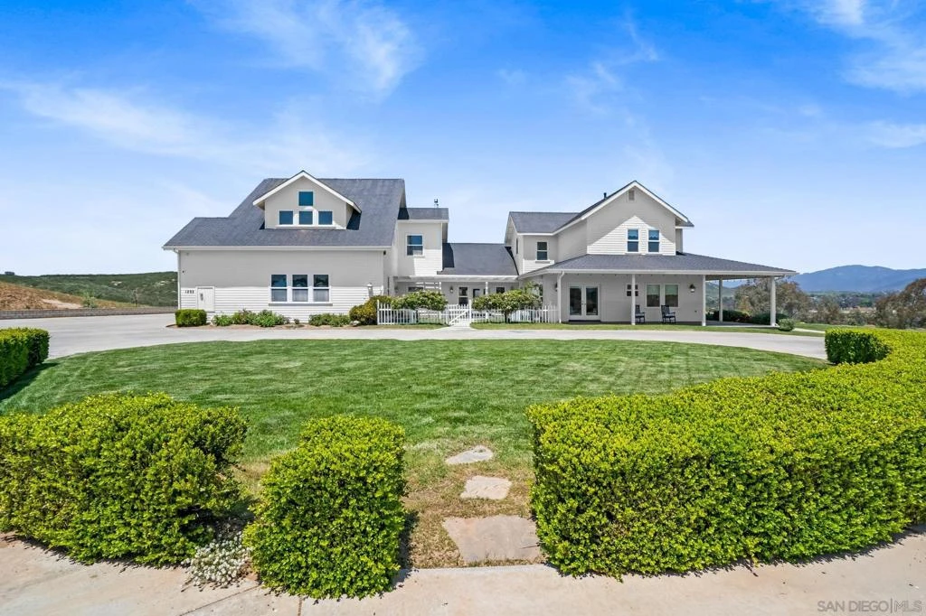 Luxury Estate spanning 4,678 sq ft with Panoramic Views. Resort-Style Pool & Expansive Bonus Space. Welcome to an exceptional 3-bed, 3 full-bath, 2 half-bath custom estate nestled in Ramona’s peaceful hills. This home features a 1,260 sq ft bonus room perfect for a guest suite, gym, studio, or theater. Set on 4.5+ usable acres, enjoy breathtaking mountain and valley views in a serene, private setting. The open-concept layout boasts soaring ceilings, abundant natural light, and a chef’s kitchen with granite countertops, high-end appliances, and custom cabinetry, ideal for entertaining. The spacious first-floor primary suite opens to a generous patio, creating seamless indoor-outdoor living. Outdoor highlights include a resort-style pool, built-in BBQ, mature landscaping, and space for horses, RVs, or an ADU. Exterior of home just painted! Additional features: 4-car garage with storage, private well, and no HOA. Just minutes from town, wineries, and trails, this luxurious retreat offers the best of country living with modern comfort.
