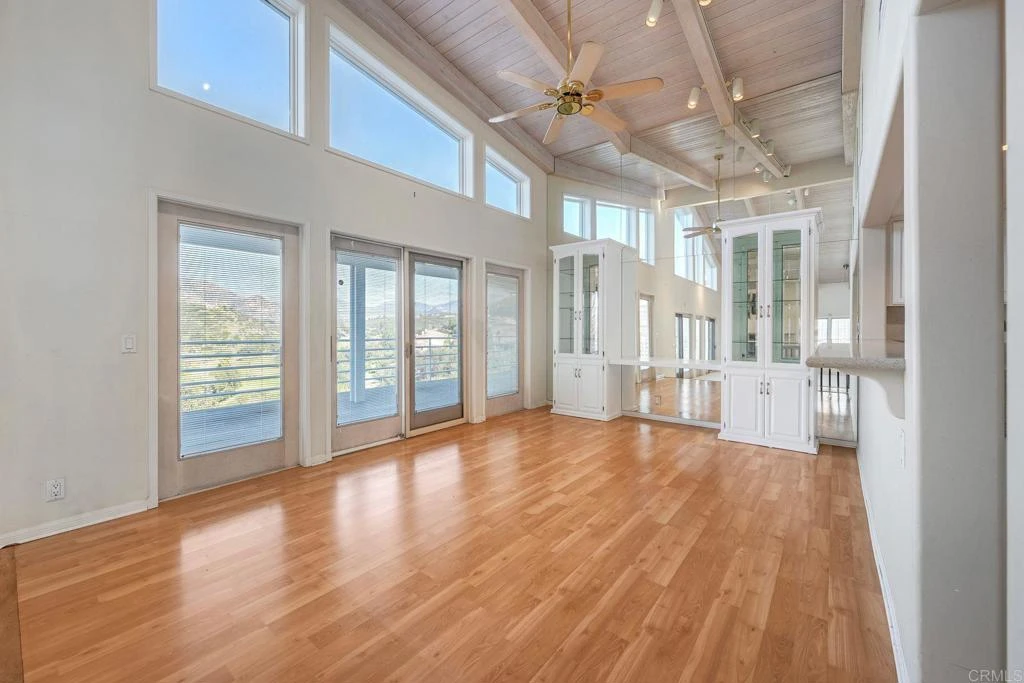 Stunning home with panoramic mountain and valley views in the highly desirable San Diego Country Estates! Perched on an elevated lot, this light-filled residence offers soaring vaulted wood-beam ceilings, expansive windows, and an open floor plan designed to capture breathtaking scenery from nearly every room. The spacious living room features a cozy fireplace, dramatic ceilings, and direct access to a large view deck—perfect for indoor-outdoor living and entertaining. The adjacent dining area flows seamlessly and is filled with natural light. The kitchen offers ample cabinetry, generous counter space, and a breakfast bar that opens to the main living areas. The oversized primary suite includes vaulted ceilings, private outdoor access, and an ensuite bath with dual vanities, separate tub, and separate shower. Additional bedrooms are well-sized with flexible options for guests, office, or hobbies. Additional highlights include a 3-car garage, indoor laundry, and multiple outdoor spaces including a front patio and expansive rear deck to take in the surrounding hills, golf course and open space. Solar system in place for added energy efficiency. Located in the San Diego Country Estates, residents enjoy exceptional amenities including pools, tennis and pickleball courts, parks, miles of hiking and riding trails, and much more. A rare opportunity to own a view home with space, character, and access to one of San Diego County’s most sought-after communities!