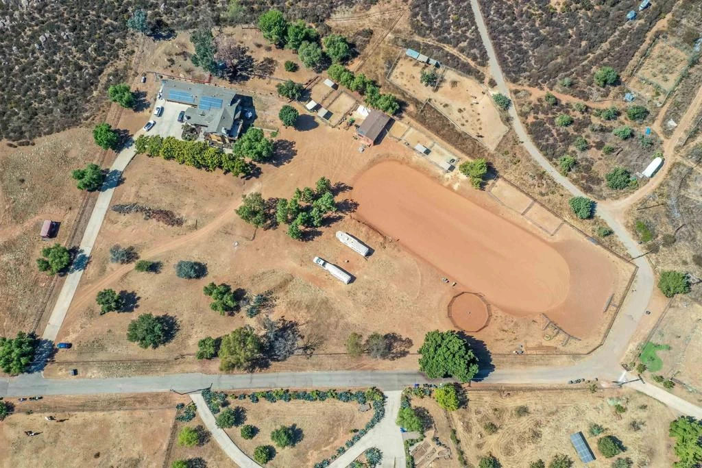 Your Southern California Dream Ranch Awaits! Nestled on 5.33 usable acres in the heart of San Diego County, this stunning property offers serene mountain views and easy access to Highway 78, making your commute “down the hill” a breeze. Surrounded by peaceful, quiet trails, this fully fenced and gated estate offers both privacy and natural beauty. The spacious well appointed ranch-style home is perfect for entertaining or multi-generational living. As you enter, you'll be greeted by an impressive grand staircase and a thoughtful and unique floorplan that offers great use of space. Cozy fireplaces in both of the living rooms and primary bedroom suite. The entertainer's bar is perfect for social gatherings, while the chef's kitchen, equipped with a Viking refrigerator/freezer, a 6-burner propane stove, and a massive butcher block island, is a dream for anyone who loves to cook. A large laundry/utility room adds to the home's practicality. Recent upgrades include stunning wood-look tile flooring and newer energy-efficient windows and doors throughout. Two newer HVAC systems, two tankless water heaters, and an owned 10.5 KW solar system significantly reduce utility costs. The property also features a well with new well pump/pipe extended to 1,300 feet, ensuring ample water supply. For the horse enthusiast, the home offers picturesque views of the massive manicured arena and round pen/stall areas, making it easy to keep an eye on your horses or livestock. The property is zoned A-70 with an M animal designator, offering plenty of flexibility for ranch use. An oversized garage and shed provide ample space for ranch equipment or tack. This is truly a one-of-a-kind property in a tranquil, yet accessible, location—perfect for anyone seeking a peaceful ranch lifestyle with room to roam.