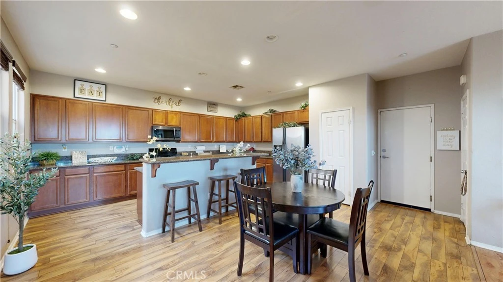 Welcome to Alicante at Church, where everyday living feels like a private resort in the heart of North Rancho Cucamonga. From the moment you arrive, you’re greeted by swaying palm trees and vibrant crape myrtles, setting the tone for a relaxed, California lifestyle. The community features a sparkling pool and spa, lush park-like grounds, a playground, and BBQ areas, perfect for both quiet afternoons and entertaining guests. This well-maintained condo offers an open and airy floor plan with high ceilings and a seamless flow between living spaces. The living room is warm and inviting, highlighted by a cozy gas fireplace and direct access to a private patio, ideal for outdoor dining or weekend grilling. The kitchen is designed for both function and style, featuring granite countertops, abundant cabinetry, and a breakfast bar that opens to the living area, perfect for casual meals or hosting. Upstairs, you’ll find three spacious bedrooms, including a generously sized primary suite that easily accommodates a king-sized bed. The suite includes a walk-in closet and a private en-suite bathroom with dual vanities, a soaking tub, and a separate shower. A conveniently located upstairs laundry area adds to the home’s thoughtful layout. Additional features include wood laminate and wood flooring, a two-car attached garage, and a water heater with a recirculating pump for near-instant hot water. The HOA enhances the lifestyle by covering the pool, grounds, water, and internet service. Guest parking is plentiful, making it easy to welcome friends and family. Ideally located near shopping, dining, and Ontario International Airport, this home combines comfort, convenience, and resort-style amenities. Come see it, fall in love, and make it yours.