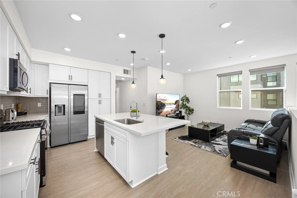 Elevate your lifestyle at 11026 Momentum Drive, an end-unit that perfectly captures the modern energy and sophisticated design of Rancho Cucamonga’s premier master-planned community, “The Resort.” This turnkey residence offers an “as-new” experience, reimagining the traditional townhome as a sleek, penthouse-style retreat. The arrival experience is effortless, featuring a direct-access garage enhanced with upgraded epoxy flooring that leads you into the home. From the entryway, you are guided to a light-filled second floor where the entire living experience unfolds on a single, seamless level. At the heart of the home, the gourmet kitchen features a large social island and an abundance of countertop space, flowing effortlessly into an open living area designed for both high-end entertaining and quiet relaxation. To one side, a door opens to your private balcony for morning coffee, to the other, a long hallway provides a quiet transition to the bedroom sanctuaries, modern bathrooms, and a convenient laundry closet. Every window is adorned with custom designer roller shades, adding a final layer of polished sophistication to the sun-drenched interior. Living at “The Resort” means more than just a home, it’s a celebration of life’s vibrant moments with a low HOA and No Mello-Roos. Enjoy exclusive access to five-star amenities including a designer clubhouse, conference room, high-performance gym, and a shimmering resort-style pool. Situated in a rapidly growing destination, you are just steps from local favorites like Teaspoon and a variety of new retail businesses opening soon. With Haven City Market, Ontario Mills, and the Toyota Arena just a short drive away, this property delivers the ultimate lifestyle experience.
