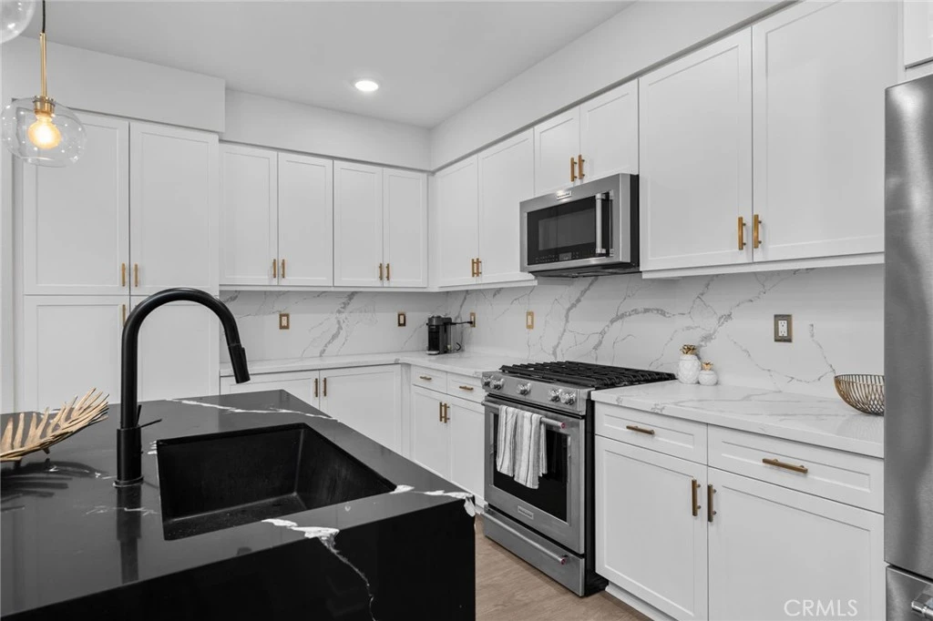 Welcome to 11044 Luminate Drive in Rancho Cucamonga, a fully furnished, stunning tri-level corner condo built in 2021 with 1,467 sq ft of modern, sun-filled living space. This thoughtfully designed home features 3 bedrooms, 2 full baths, 2 half baths, and a 2-car tandem garage with EV-ready hookup. As a rare corner/end unit, it boasts abundant natural light throughout and enhanced privacy. The home comes fully equipped with all appliances, including a Platinum Series counter-depth refrigerator, convection oven, Max Jet dishwasher, microwave that doubles as an oven, and LG washer and dryer in the dedicated laundry room. The first floor offers the garage, a half bath, and a welcoming entryway. The second floor is perfect for entertaining with a spacious living area, chef-inspired kitchen with dramatic waterfall quartz island, a half bath, and patio. The entire third floor is dedicated to bedrooms and convenience, featuring the primary suite with dual-sink vanity, stand-up shower, and large walk-in closet, a full guest bath with tub, and two additional bedrooms. Enjoy mountain views from the primary suite and staircase while soaking in the natural light. Residents enjoy a lifestyle-focused HOA with amenities including a dog wash, pool, spa, BBQ pits, fire pit, gym, conference and meeting rooms, and a banquet center for hosting events. The community is home to Teaspoon Boba Café and will soon welcome Cassidy’s Corner bagel shop along with other shops and retail. Ideally located near Ontario Mills, Victoria Gardens, Target, Stater Bros, Starbucks, and an abundance of dining and shopping options, with quick access to the 10, 15, and 210 freeways.