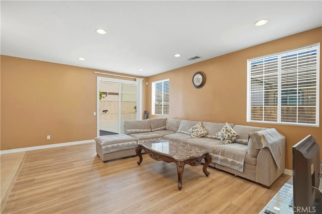 This beautifully maintained 2010-built single-family home is ideally located in one of Rancho Cucamonga’s desirable neighborhoods, within walking distance of Victoria Gardens and served by the highly regarded Etiwanda School District. A welcoming covered front porch offers a pleasant space to enjoy your morning coffee or relax in the evening.Inside, premium waterproof flooring runs throughout, creating a clean and cohesive look. The well-designed kitchen features granite countertops, rich-toned cabinetry, a center island, and an open-concept layout that flows into the family room — ideal for everyday living and entertaining. A convenient downstairs bedroom with a full bath provides flexibility for guests, multigenerational living, or a private home office. The home also features a versatile bonus room offering the flexibility of a potential fifth bedroom. Upstairs, the spacious primary suite features a dual-sink vanity, a separate tub and glass-enclosed shower, offering a comfortable and functional retreat. Additional highlights include a dedicated laundry room with built-in cabinetry and utility sink, low-maintenance landscaping, and a custom iron side gate that enhances both privacy and curb appeal. With no HOA and low property taxes, this home offers comfort, functionality, and a prime location — a wonderful opportunity to own in one of Rancho Cucamonga’s most sought-after communities