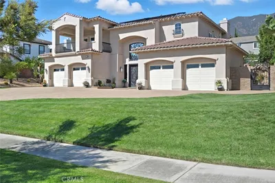 Welcome to The Summit House, an extraordinary modern architectural masterpiece boasting 3,963 square feet of exquisitely crafted living space in the main residence, perched at approximately 2,150 feet above sea level at the end of one of Rancho Cucamonga’s most private and elevated cul-de-sacs. This bespoke estate embodies a seamless fusion of precision engineering, sophisticated design, and elevated lifestyle. A striking 27-foot glass tower and floating portico announce your arrival, opening to a grand foyer defined by soaring ceilings and a sculptural glass staircase. The main living level is anchored by an 18-foot feature wall clad in slab marble with a fireplace, integrated bar, and expansive disappearing glass walls that dissolve the boundary between interior and resort-inspired grounds. Outside, 22-foot steel columns frame a covered patio overlooking a modern pool and elevated spa, meandering water features, a vineyard, orchard, and meticulously manicured lawns — all conceived for privacy, serenity, and visual harmony. The chef’s kitchen is a triumph of design, featuring Italian Stosa cabinetry, a dramatic 12-foot waterfall island, and fully integrated Thermador appliances. The residence offers three gourmet kitchens, opulent en-suite bedrooms, spa-caliber baths with advanced smart technology, and a primary suite with commanding mountain and valley views. An upper-level Sky Residence provides over 950 square feet of private quarters with its own entrance, kitchen, and bath — perfect for guests or extended family. Engineered for ultimate performance, the home is equipped with enterprise-grade networking, integrated security and surveillance, Lutron lighting, Sonos audio, multi-zone HVAC, dual tankless systems, and solar integration. With an approximately 30’ x 40’ finished showroom-style garage and meticulous attention to every detail, The Summit House is the pinnacle of modern architectural sophistication — where artful design meets unparalleled luxury living.