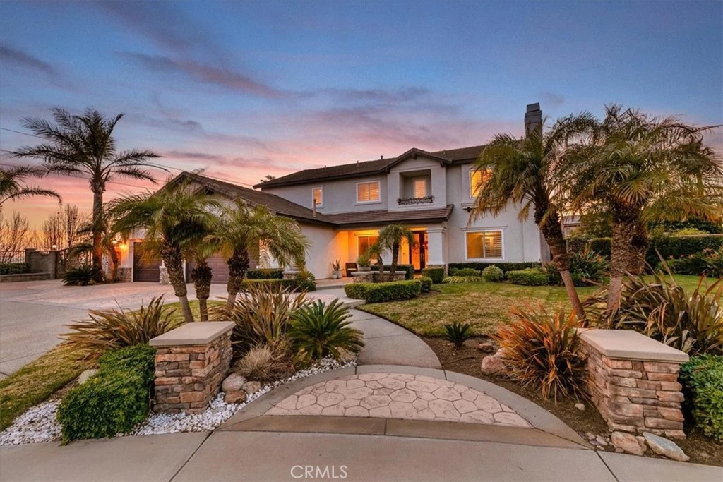 Welcome to an extraordinary executive estate in the prestigious Sheridan Estates of Rancho Cucamonga, where luxury living meets breathtaking city lights and mountain views. Situated on an expansive near half-acre lot, this former model home showcases impeccable design, upgraded features, and refined elegance throughout. From the moment you enter, you are greeted by soaring ceilings, natural light, and thoughtfully curated finishes that reflect true pride of ownership. The remodeled chef’s kitchen is the heart of the home, featuring premium brand-new stainless-steel appliances, custom cabinetry, upgraded quartz countertops, and seamless flow into spacious living and entertaining areas. Designed for flexibility and comfort, the home offers a desirable downstairs bedroom and full bathroom—perfect for guests, multi-generational living, or a private office. The primary suite offers dual closets, plantation shutters, and your own private balcony with gorgeous city light views. The massive bathroom offers a jetted tub, dual sinks, a walk-in shower, and recently painted. Step outside into your own private resort. The backyard is a true paradise, complete with a dramatic rock pool and spa with grotto, built-in barbecue, fire pit, large rock fireplace, and expansive entertaining spaces—all framed by panoramic city light and mountain views. Whether hosting sunset gatherings or enjoying quiet evenings under the stars, this outdoor sanctuary delivers unmatched ambiance and privacy. Additional highlights include RV parking, a three-car garage, upgraded finishes throughout, and immaculate maintenance that makes this home completely move-in ready. This is more than a home—it’s a lifestyle of elegance, comfort, and elevated California living in one of Rancho Cucamonga’s most desirable communities.