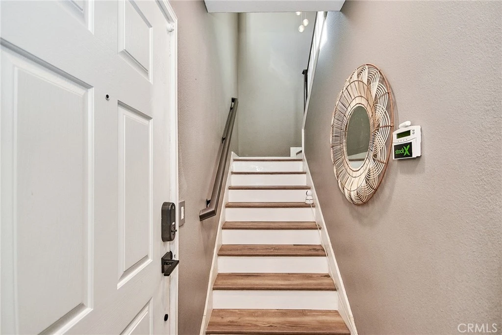 Price REDUCTION! Discover the epitome of modern living in this exquisite corner unit within Rancho Cucamonga's prestigious Brighton at Etiwanda community. This thoughtfully upgraded 2-bedroom, 1-bath residence boasts an open-concept layout with soaring ceilings, where all living spaces are conveniently situated upstairs for enhanced privacy. The contemporary kitchen stands out with its self-closing cabinets, premium quartz countertops, stainless steel appliances, and generous pantry—ideal for everyday meals or hosting gatherings. Adjacent, the dining area features a chic light fixture and seamlessly connects to the living room, bathed in natural light from expansive windows. Step out from the living space or the master bedroom onto one of two private balconies, perfect for morning coffee or evening unwinding. The master suite offers a spacious walk-in closet, direct balcony access, and an en-suite bath with dual sinks, modern cabinetry, quartz vanity, and a walk-in shower. Throughout the home, durable wood-look waterproof luxury vinyl flooring adds a touch of elegance, complemented by a convenient indoor laundry area for full-sized appliances. Additional highlights include a large attached 2-car garage with direct access and extra storage, plus recent remodels in the kitchen and bath. Community perks abound with low HOA dues covering water, along with access to a resort-style pool, spa, outdoor showers, BBQ and picnic areas, and a playground. Ideally positioned just moments from Victoria Gardens for upscale shopping, dining, and entertainment, and with seamless connectivity to the 15, 210, and 10 freeways, this home delivers unparalleled convenience in a sought-after neighborhood. Schedule a viewing today and envision your future here.