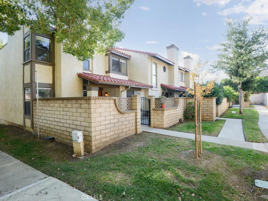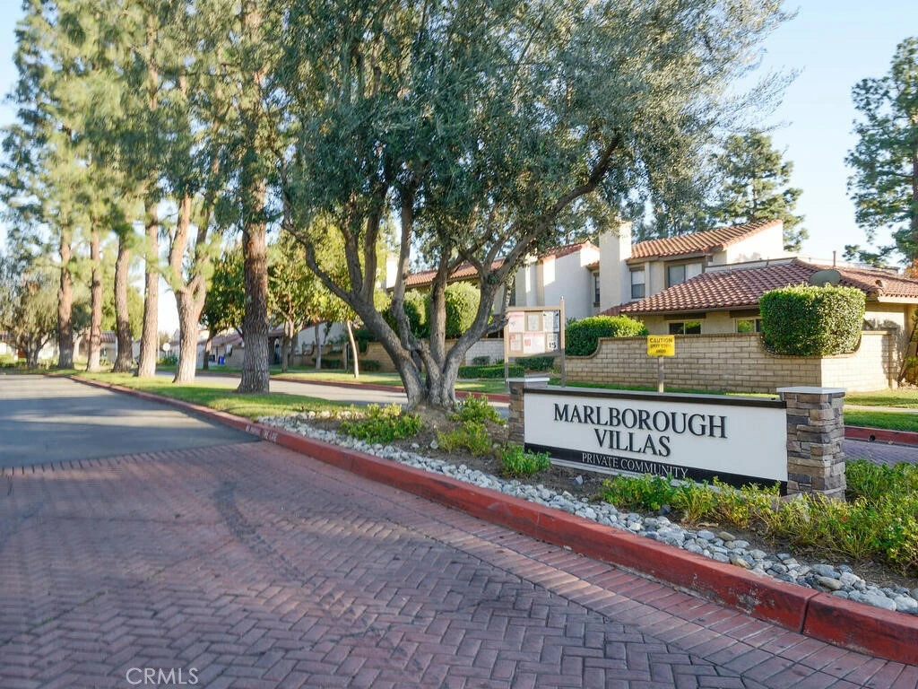 Welcome to this TURNKEY Marlborough Villas Townhome situated in a very quiet and private location. Highly desirable END Unit therefore, only 1 common wall. New roof just installed in November 2025!!! Kitchen features newer cabinetry, granite counters, new dishwasher and refrigerator included! The laundry room is adjacent to the kitchen and has both gas and electric dryer hookups. Dining area has a view of a large front courtyard and ceiling fan. Cozy brick fireplace has a gas line for wood or gas logs. Both primary bedroom suites offer amazing views of mountains. First floor guest bath has a granite counter and custom cabinetry. Oversized 2 car garage features auto opener, direct access to interior and built in cabinets. Short walk to 1 of 3 Community pool/spa areas and Dog Park plus convenient to nearby schools, shopping and 210,15 & 10 freeways. Community has 3 pool/spa areas, tennis courts and Clubhouse! This townhome offers so much to the fortunate new owner!! Don't wait to view it soon!!!