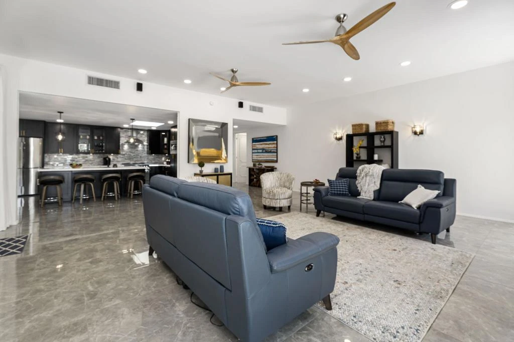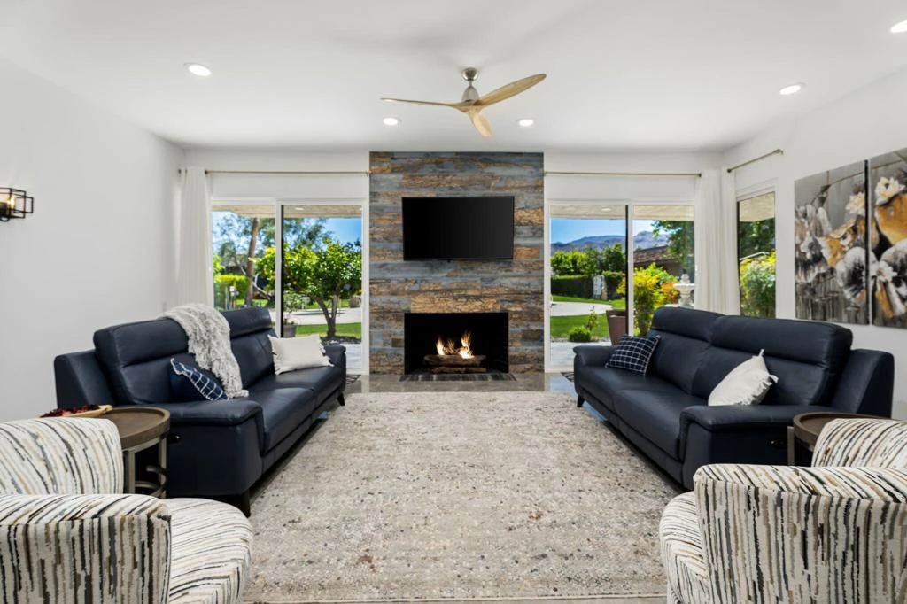Experience unparalleled luxury in this exquisite, fully furnished desert oasis located within the prestigious Springs Country Club in Rancho Mirage. From the moment you enter through custom glass double doors, a striking long hallway guides you toward breathtaking south-facing views of the majestic San Jacinto Mountains, setting the tone for serene and elegant desert living.This beautifully updated home features the expanded Doral floor plan, of sophisticated space with three generously sized bedrooms and three spa-inspired bathrooms designed for ultimate comfort and relaxation. Gleaming high-gloss tile flooring flows seamlessly throughout the open-concept living areas, enhancing the modern aesthetic and inviting ambiance.At the heart of the home lies a newly redesigned kitchen that effortlessly connects to the living space, perfect for both entertaining and everyday living. Culinary enthusiasts will appreciate the large island, premium stainless steel appliances, and ample cabinetry. Adjacent to the kitchen, a stylish alcove bar provides an ideal spot to unwind with friends or enjoy a quiet evening cocktail.Abundant natural light pours in through skylights and soaring ceilings, creating an open, airy environment. The home boasts numerous upgrades including brand-new windows and sliding doors, recessed lighting, a built-in audio system, and updated mechanicals for enhanced comfort and energy efficiency. Owned solar panels further contribute to sustainable living.Step outside to your private outdoor sanctuary featuring multiple patios and seating areas surrounded by vast, freshly landscaped grounds. Whether seeking gentle serenity or hosting elegant gatherings, these spaces offer stunning mountain vistas and a tranquil atmosphere.Residents enjoy access to a nearby community pool/spa that exudes a resort-like feel, nestled within a lush greenbelt and framed by breathtaking mountain views.This exceptional Rancho Mirage residence invites you to embrace a lifestyle of luxury and tranquility in one of the desert's most coveted communities. Discover the perfect blend of modern elegance and peaceful desert charm at The Springs Country Club--your dream home awaits.