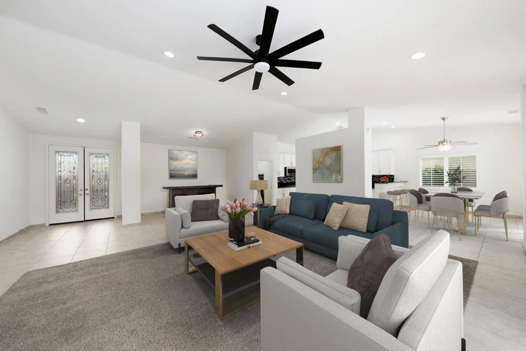 Tucked behind the gates of Key Largo in Rancho Mirage, this south-facing single-family residence captures everything buyers come to the desert for: privacy, sunlight, and effortless indoor-outdoor living. With low HOA dues and a central location near dining, golf, and resort amenities, the home offers the kind of everyday ease that defines the Rancho Mirage lifestyle.From the moment you step inside, the home feels open, calm, and welcoming. The layout flows naturally, with an updated kitchen featuring granite countertops, stainless steel appliances, white cabinetry, a walk-in pantry, and a breakfast nook, all opening to the main living and dining areas. Recessed lighting, electric blinds, ceiling fans, and a tiled fireplace add warmth and comfort without distraction, making spaces that feel just as good for quiet mornings as for entertaining.The primary suite is a true retreat, thoughtfully positioned for privacy and designed to slow the pace of the day. A dual-sided fireplace connects the bedroom and bath, while dual vanities, a soaking tub, a tiled shower, recessed lighting, and a walk-in closet create a spa-like experience at home. Two additional bedrooms offer flexibility for guests, and or office space.Outside, the lifestyle truly comes alive. The south-facing backyard is sun-filled and serene, featuring a pebble-finish pool and spa, an aluminum pergola, stamped concrete, outdoor lighting, mountain views, and desert landscaping with selective grass, ideal for long afternoons, evening gatherings, or simply enjoying the quiet desert air.Additional highlights include updated pool equipment, an alarm system, cameras, interior and exterior speakers, electric blinds, and a three-car garage with treated floors and built-in storage. IID electric helps keep utility costs manageable.This is more than a house; it's a home designed for how people actually live in Rancho Mirage. Come experience it for yourself.
