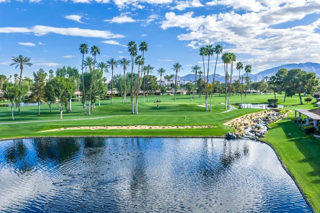 VIEWS, VIEWS, VIEWS!! This East facing expanded en ensuite 3bd/3 ba Broadmoor model situated on the lake & green at the 8th hole of the beautifully remodeled championship golf course at The Springs Club, boasts spectacular golf course views looking across the green on the par 3 8th hole to the tee/fairway of the par 5 9th hole. Located on a quiet interior street, this lovely location is ready for your personal touches. Featuring a wrap around back patio, with mist system, to enjoy the golf course & our desert outdoor lifestyle perfect for entertaining friends & family. The kitchen features high-end appliances, granite counters and upgraded cabinetry. THIS HOME IS A MUST SEE! The Springs is a premier country club located across from the Eisenhower Medical Campus, close to world class shopping/dining & the McCallum Theater for the Performing Arts.Add in a newly renovated golf course & remodeled clubhouse, 2 restaurants, fitness center, courts pavilion and a lively social scene, THE SPRINGS - ITS'S WHERE YOU BELONG.