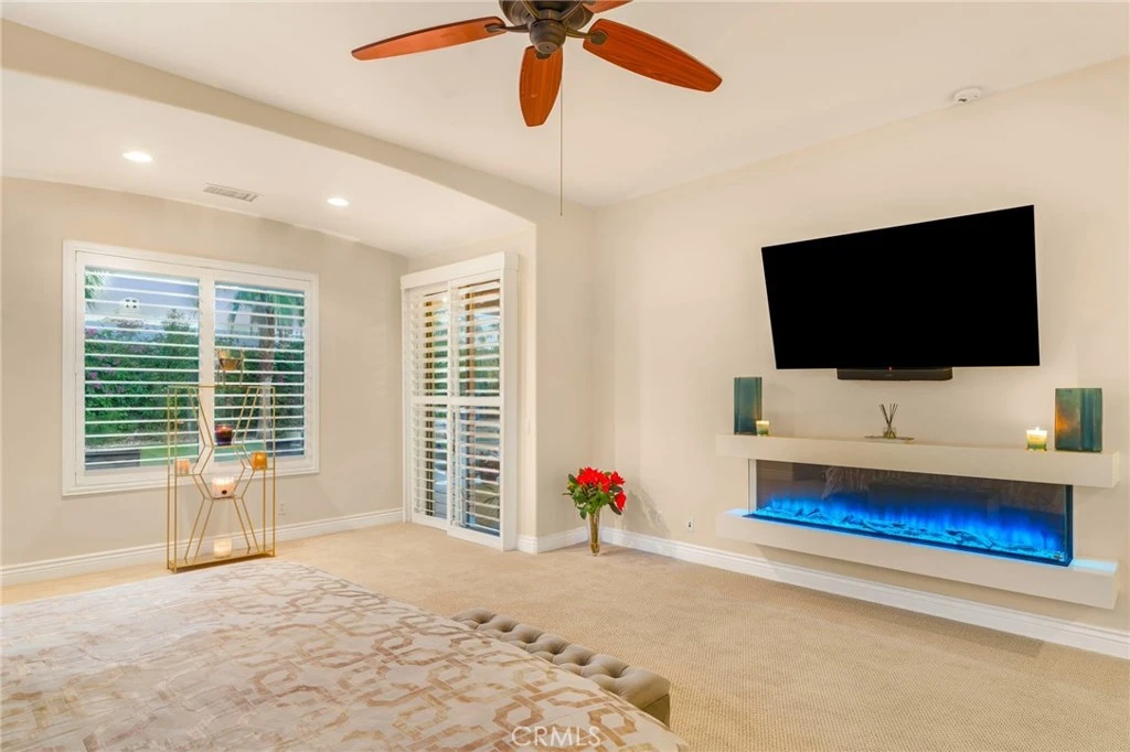 Best value in the community -- A stunning residence tucked inside the prestigious gated community of La Terraza Palacio. This expansive, single-story home offers an exceptional blend of privacy, scale, and refined living space. Step through the grand entry into a home designed for both leisurely living and elevated entertaining. Crowned by distinguished statement chandelier, the grand foyer sets an elegant tone from the moment you arrive and seamlessly flows into a beautifully designed custom bar and formal dining room, while the chef’s kitchen anchors the home and opens to the main living and dining areas. Retreat to the primary suite, a private sanctuary located in its own wing and offering spa-inspired comforts, a private entrance, spacious seating area, and custom fireplace. Enjoy dual vanities, a custom designed walk-in closet, walk-in shower, and soaking tub. Guests and family will appreciate three additional guest rooms, all with ensuite bathrooms. This perfectly oriented, East-facing residence offers cool interior temperatures during summer and soft natural light throughout the home. Plantation shutters offer pleasant cooling and design. Step outside to a resort-style backyard, highlighted by a private pool and spa, spacious lounge areas, and custom, manicured landscaping. Set within a secure, gated community, this home offers close proximity to top-tier amenities: easy access to world-class golf courses, upscale shopping, fine dining, premier medical facilities, and everything that makes Rancho Mirage a place of distinction.