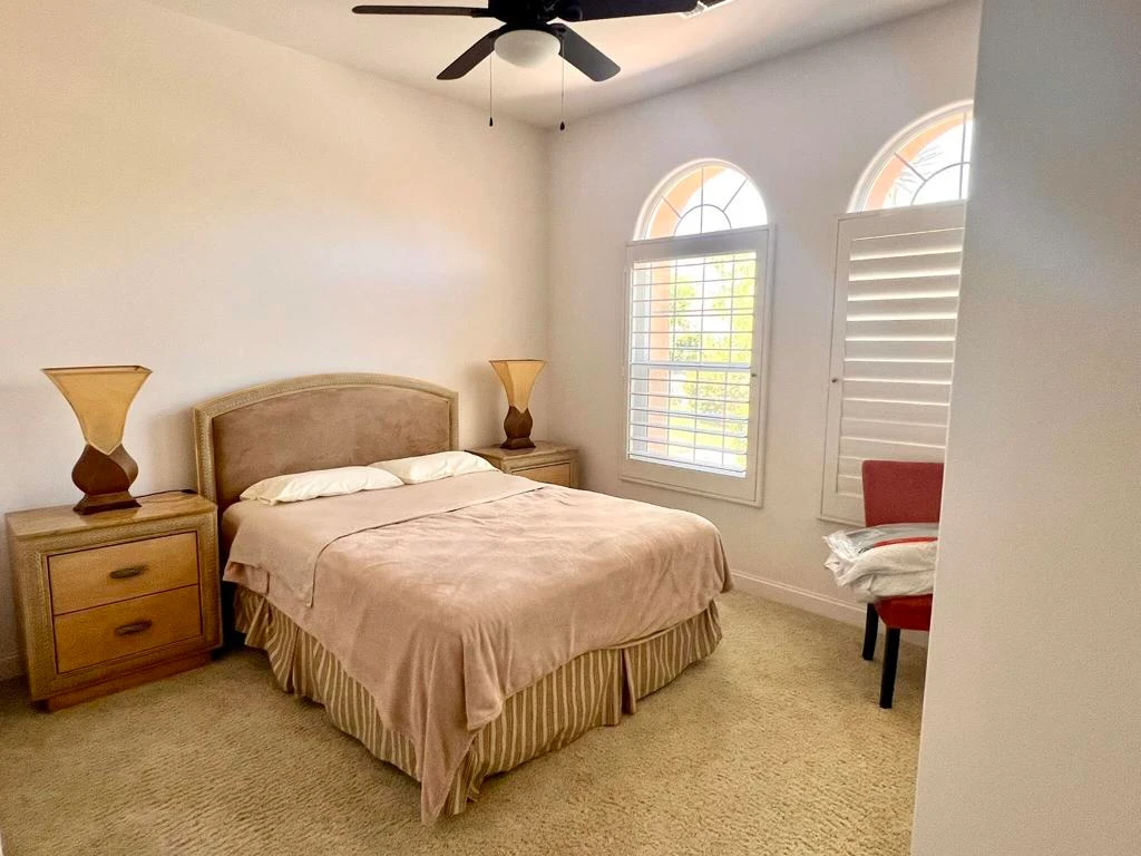 Your ultimate Desert Vacation Home awaits you inside the beautiful community of Mira Vista. This spacious 2,300 sq ft fully furnished home features 3 bedrooms, 2 bathrooms, & powder room. The spacious owners suite features a King Size bed, sliding doors to the west facing front sitting area. The owners suite also includes walk-in shower, large soak tub, double sinks, vanity & walk-in closet. The granite kitchen with island, nook, and breakfast bar opens to the dinning room & living room. The living room includes a pullout sleeper/sofa, fireplace, & wet bar. The East facing rear yard offers it's own beautiful sparkling pool, elevated spa & covered porch where you can soak in the sun and enjoy a wonderful view of the golf course. The Community amenities include tennis courts, various parks, & 24/7 guarded gates.Lease from November 2025-May 2026