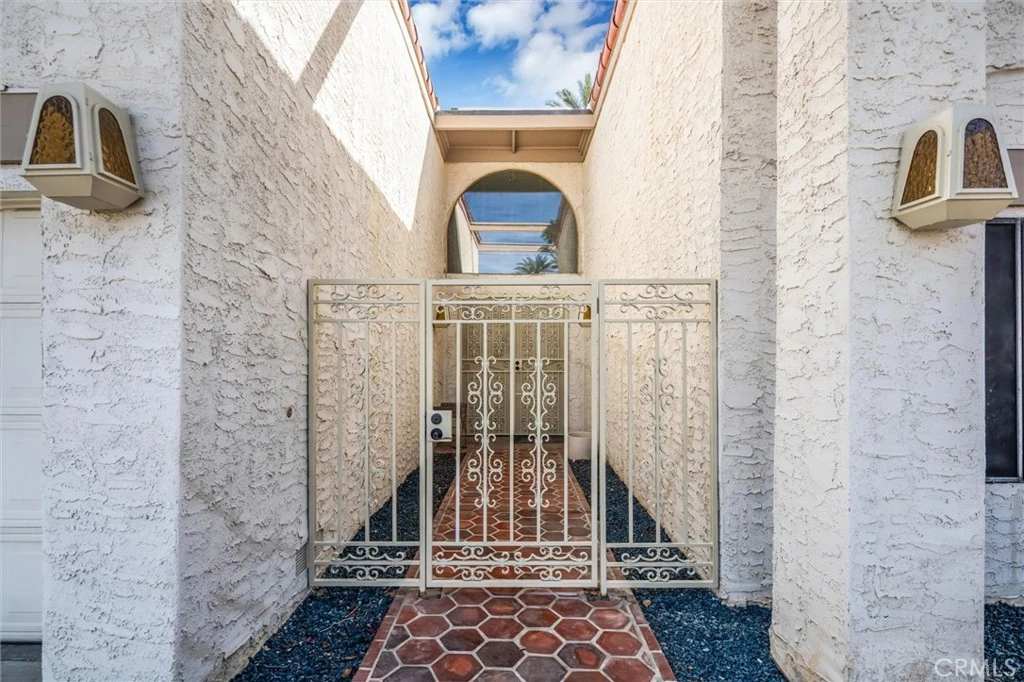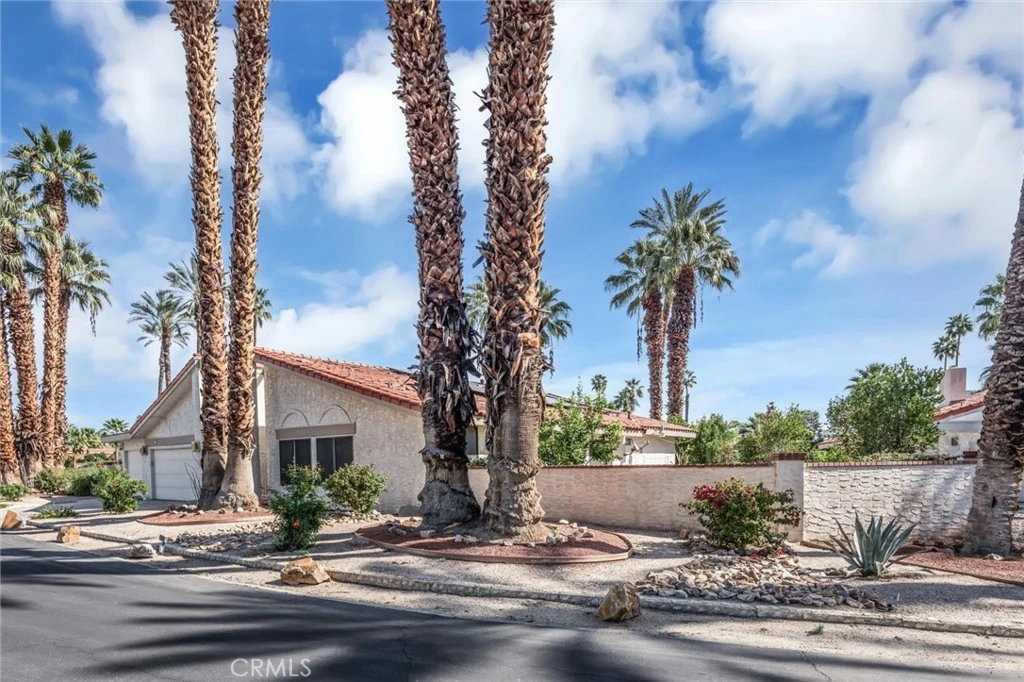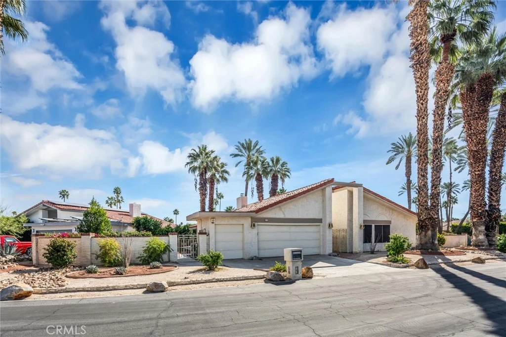 Located in the gated Presidential Estates community of Rancho Mirage, this spacious 2,700 sq ft home features an open floor plan with high ceilings, 3 bedrooms, and 3.5 bathrooms, including a large primary suite with dual bathrooms and an oversized walk-in closet. The kitchen opens to the main living areas and is complemented by a unique atrium between the kitchen and formal dining room. Additional features include a formal living room, wet bar, ample storage, a two-car garage plus a separate golf cart garage. The large walled lot offers a spacious patio and fruit trees. Community amenities include a pool, spa, and tennis courts with a low HOA, all conveniently located near shopping, dining, golf, and casinos.