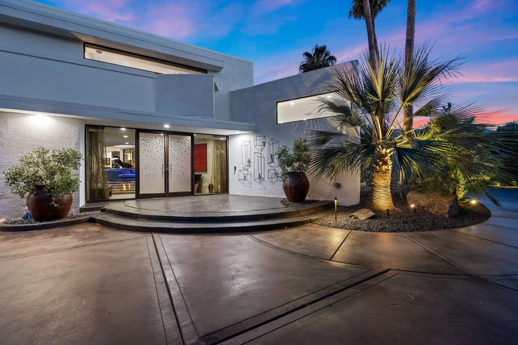 MOUNTAIN VIEWS!! Clancy Lane and Clancy Lane Estates are among the finest residential destinations in Rancho Mirage, known for rich history, privacy, oversized lots and expansive views of the Santa Rosa Mountains. This stately and elegant home offers 5 beds and 6 baths on a very large 35,000 sf lot. Landscaping is unique and impressive, like living in your own private park. Exquisite pool and spa and multiple decks and retreat areas offer lots of privacy and relaxation to owners and guests. Outdoor dining and BBQ, putting green and water features add to this very dramatic experience. Fine finishes, cabinetry, tiles, lighting and details throughout the home. Great volume, creative angles and the use of glass, doors and windows reveal the day and night design drama of architect Mark Hagedorn, associate of John Henry Howe who worked directly with Frank Lloyd Wright for many years. The result is impressive: a bright home with angles and windows that create a generous play of light and surprise at every turn. Large primary suite with direct access to the decks, pool and spa. 4 additional guest suites with one currently used as a media room, the entire house positioned around an exquisite open air atrium with lush landscaping and water feature. Long private driveway and 3 car garage with AC. OWNED SOLAR. Misting system. Motorized driveway gates.
