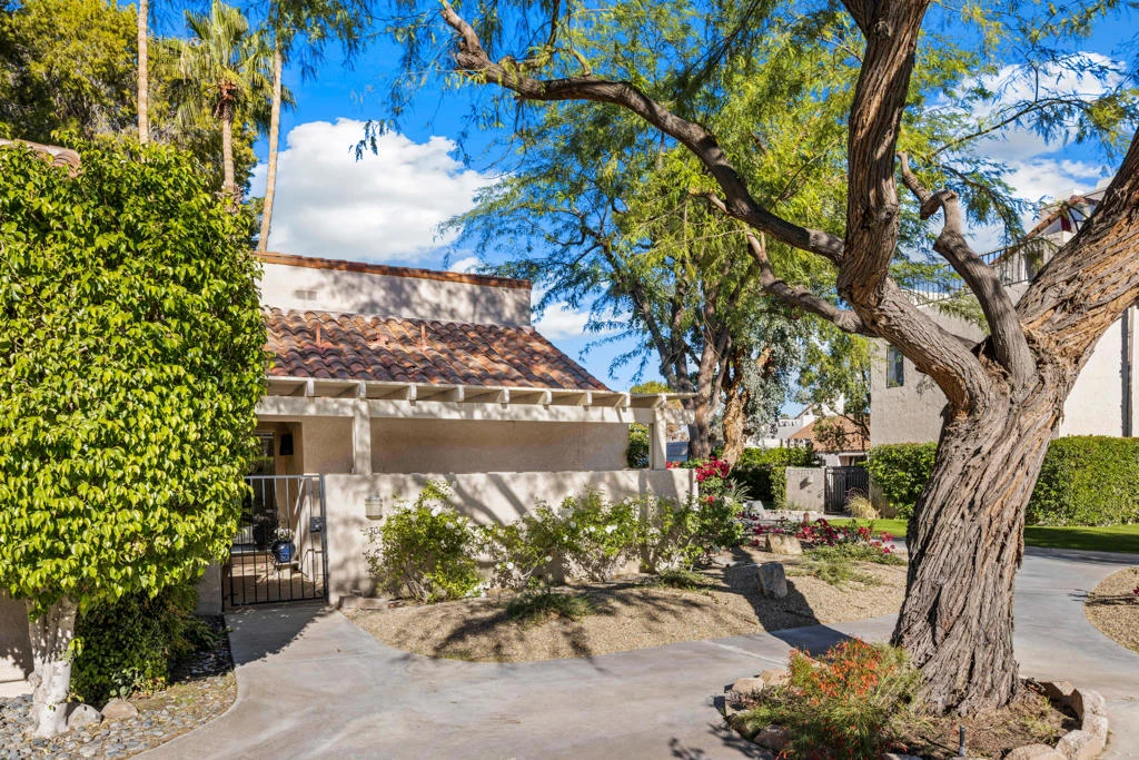 Spacious and inviting, this 1,049 sq. ft. single-level end-unit Tennis Villa in Mission Hills Country Club offers an abundance of natural light, vaulted ceilings, and only one shared wall for added privacy. Recently updated with brand-new stainless steel appliances, new flooring, and fresh paint, the home feels modern and move-in ready. Three outdoor patios provide the perfect setting for relaxing or entertaining, while the property's prime location is just steps from the community pool and spa. Detached 2 car garage included. The HOA includes common area maintenance, trash, roofs, Spectrum TV with DVR and WiFi, along with access to four pools and spas. Mission Hills Tennis Villas #3 is a sought-after enclave with just 82 residences